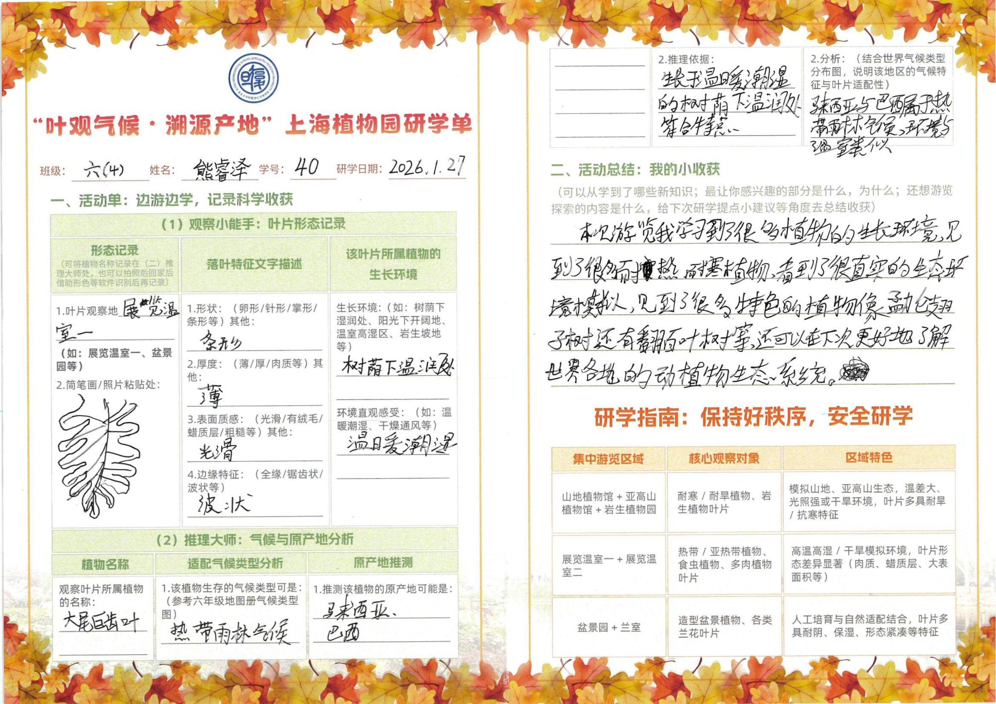 冬日的上海植物园暖意融融,六年级学生身着整齐校服,怀揣对自然的好奇,赴一场“探秘植物·乐享自然”的成长邀约。活动以班级为单位,打卡三大核心景区,在沉浸式体验中解锁植物世界的奇妙密码。
