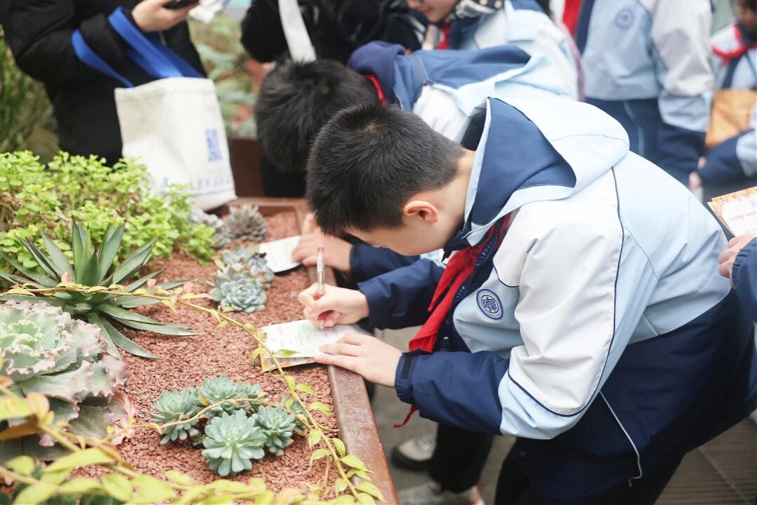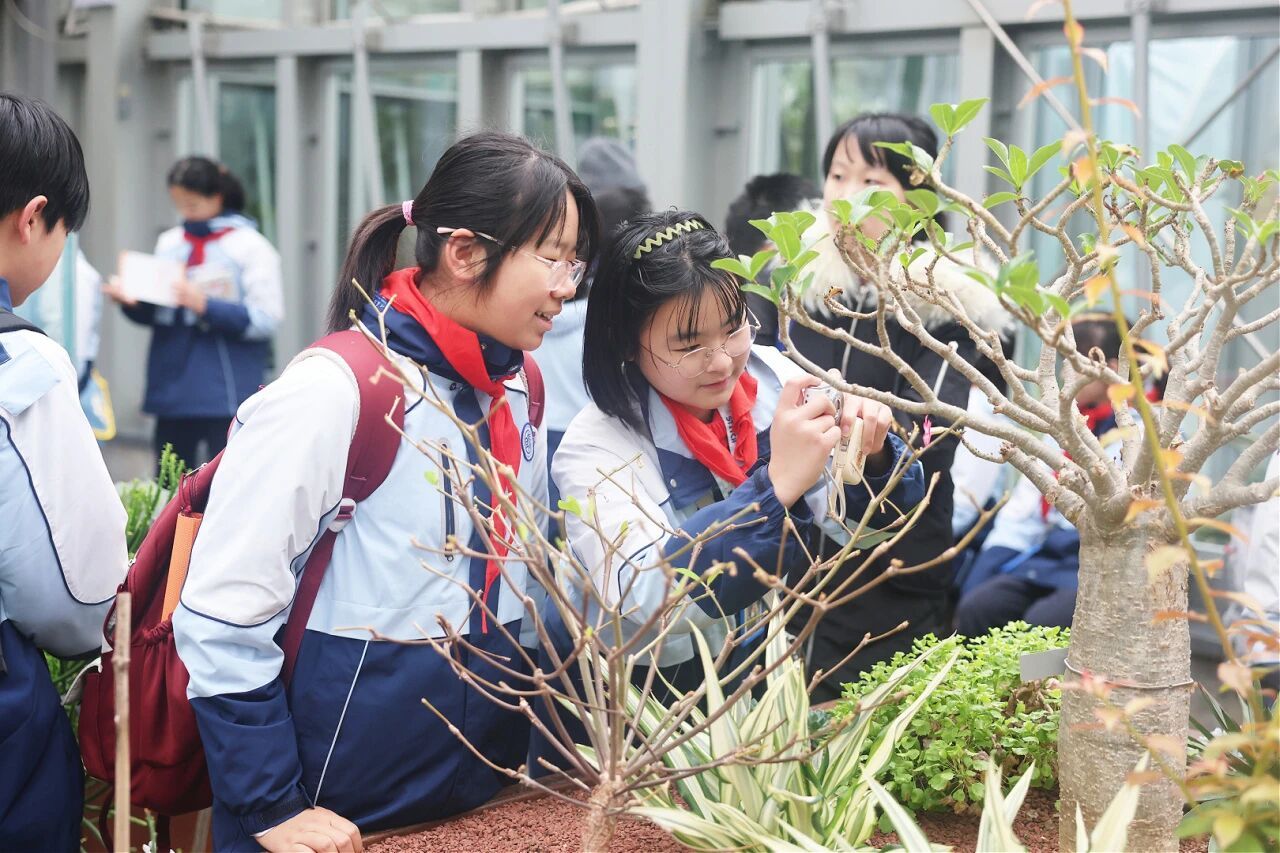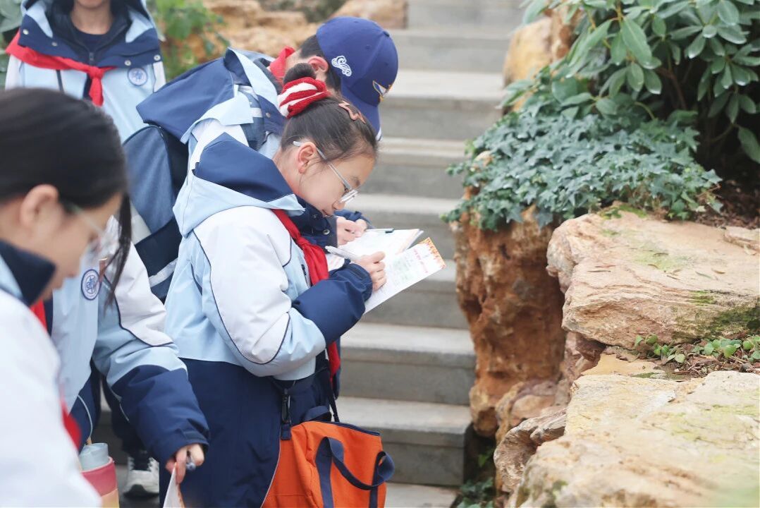 整场研学中,同学们边听边记、边看边问,在观察、记录与互动中,不仅认识了多种珍稀植物,更学会了从气候、产地等维度解读植物的生存智慧。活动将课堂搬到自然,既提升了学生的科学探究能力,更激发了大家对自然的热爱与敬畏,落实了实践育人的教育理念。