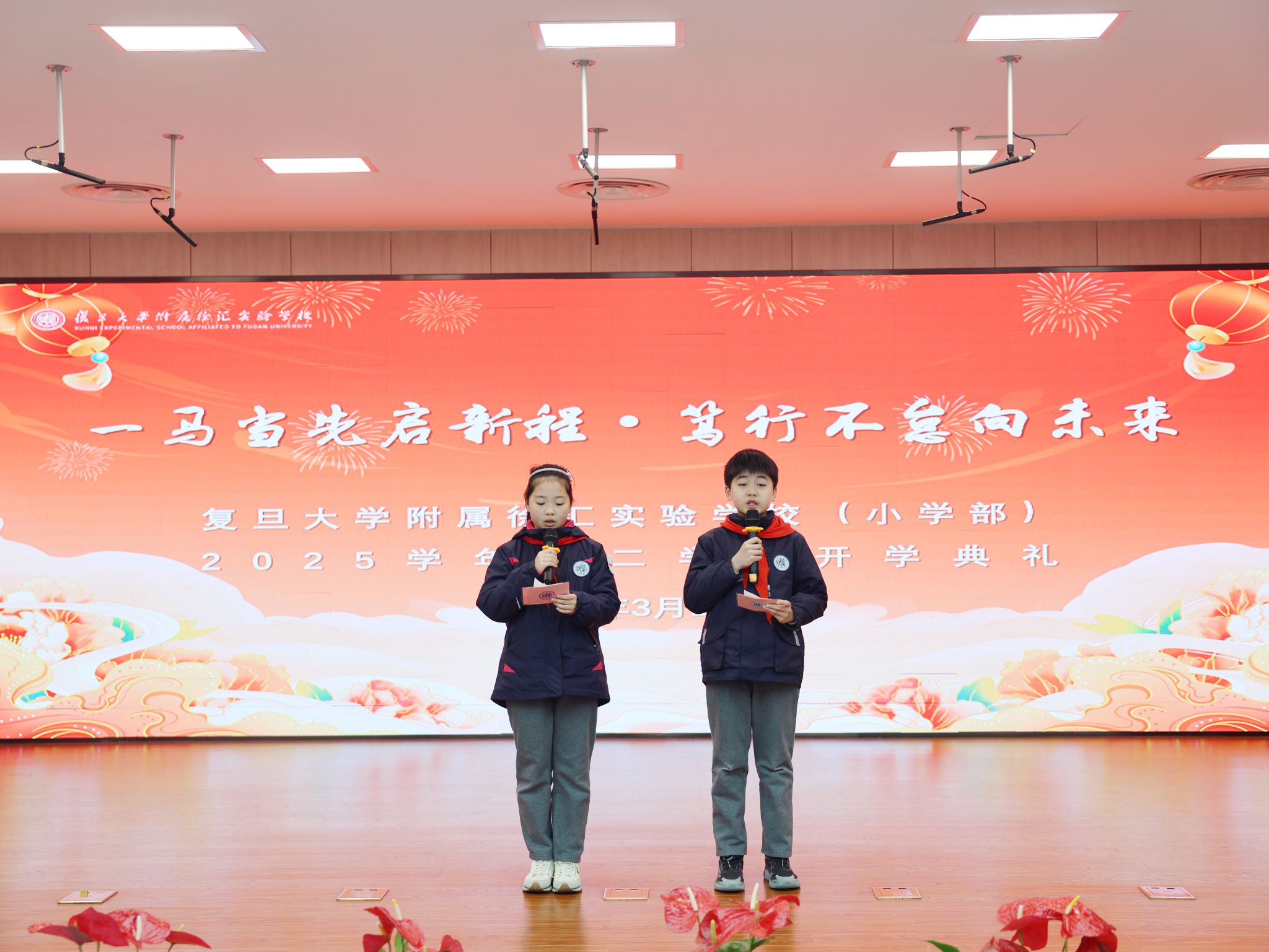 2026年3月2日,复旦大学附属徐汇实验学校以特色仪式开启新学期。本次开学典礼融合科技创新、文化传承、红色教育与寒假成果展示,为全体师生凝聚新学期奋进力量,让少年之志在春日校园里向阳生长。