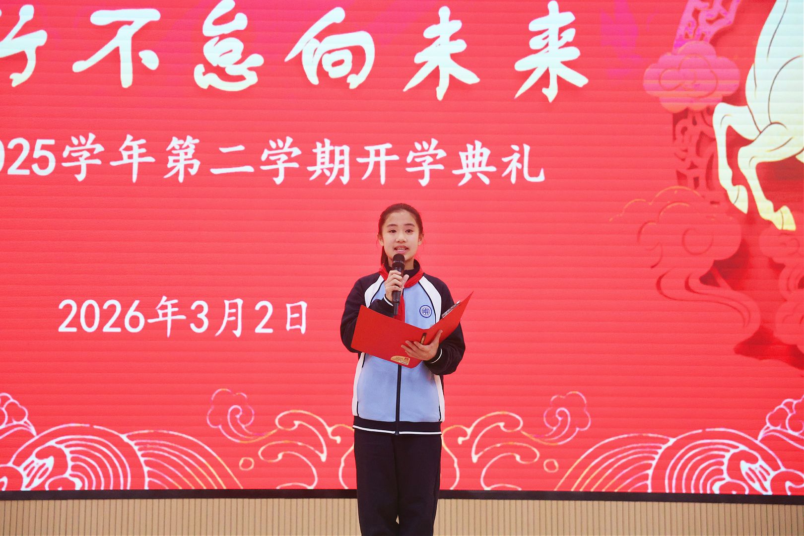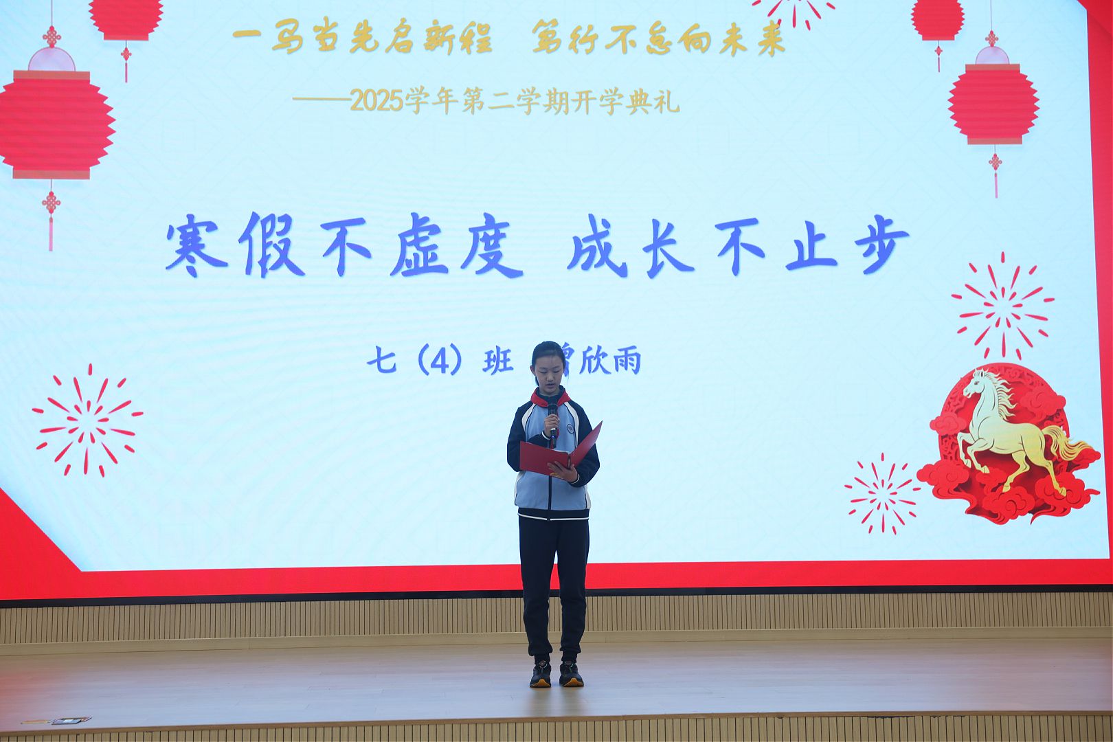 典礼上,储名方副校长以“马”所象征的奔腾向前、永不言弃的精神为引,寄语全体同学要心怀远志,做目标清晰、脚踏实地的追梦人;要勤学笃行,做勇于拼搏、永不言弃的奋斗者;要向阳成长,做全面发展、自信闪光的好少年。