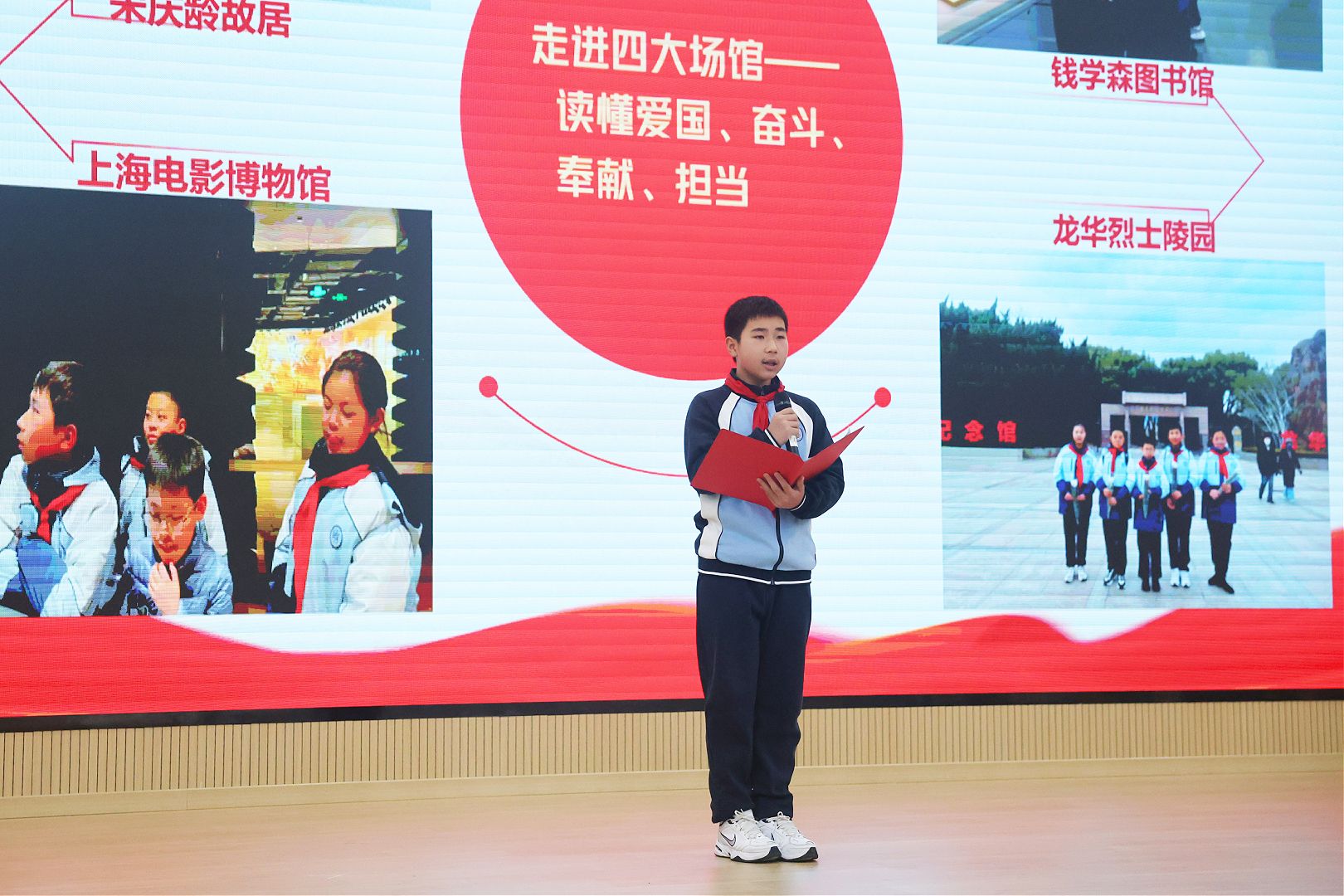 红色主题节目《永恒的回响》以徐汇红色场馆寻访为线索,带领师生重温《义勇军进行曲》的诞生历程,让红色故事直抵人心,红色精神浸润童心,引导同学们铭记历史、勇担使命。