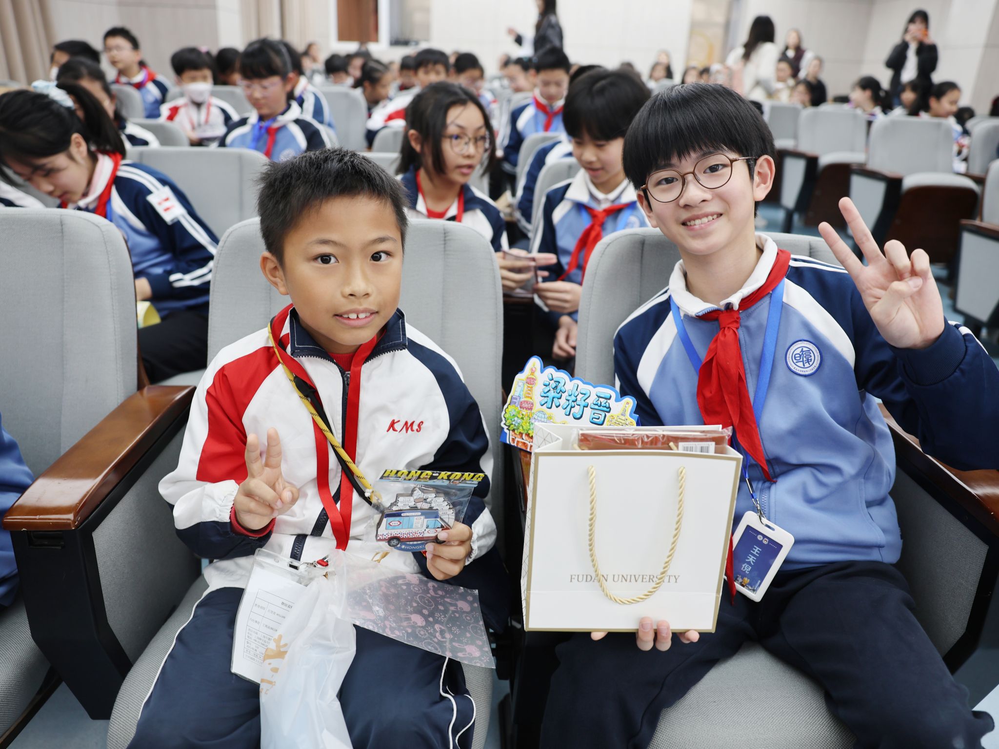 仪式伊始,两地结对学生在温馨的氛围中互赠礼物。一份份精心准备的礼物,承载着孩子们真挚的问候与美好的祝愿,成为沪港少年友谊的珍贵见证。