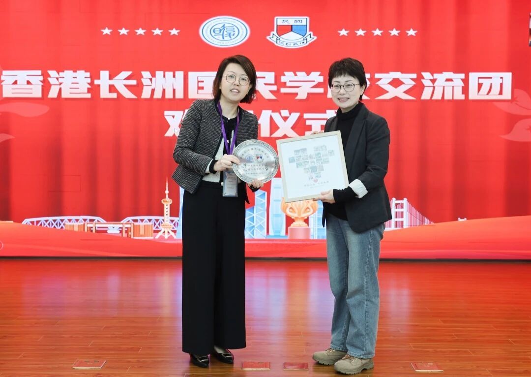 随后,两校举行校际礼物互赠仪式。复旦徐汇实验学校张敏霞书记与香港长洲国民学校郭婉琪校长代表双方交换承载着两校情谊的礼物,并合影留念。一份匠心礼,两地教育情,满载美好期许的馈赠,生动诠释沪港教育同心相融、互促共进的生动图景。