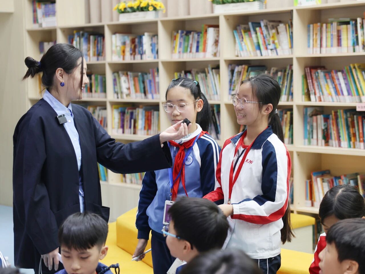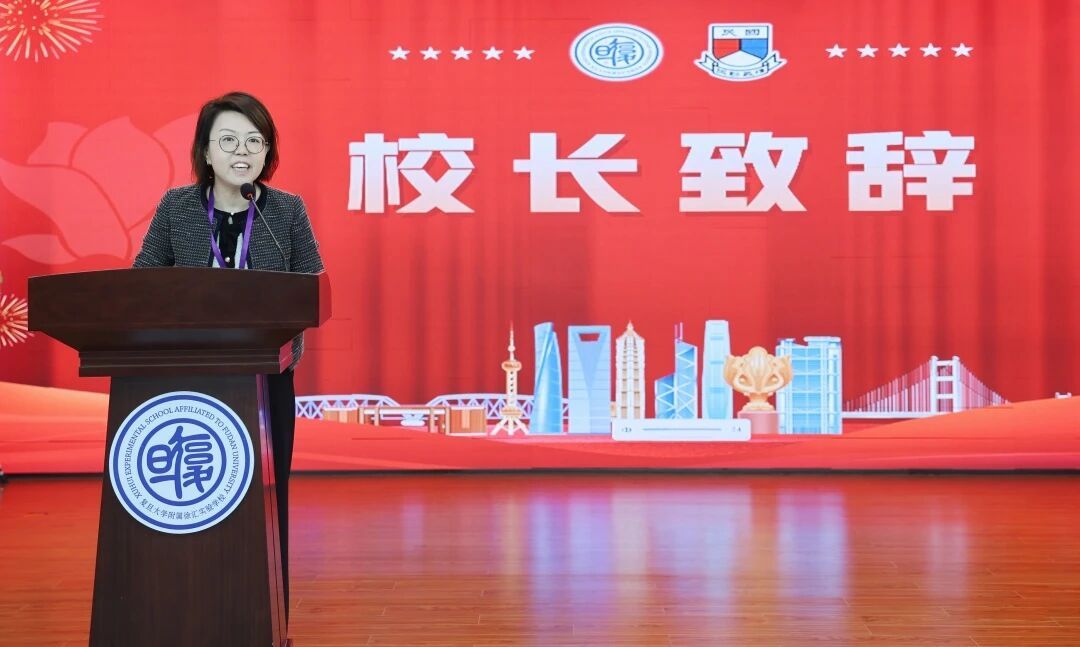 仪式上,双方校长分别上台致辞。复旦大学附属徐汇实验学校黄琪校长表示,期待两校以此次交流互访为契机,深化教育教学合作,共享优质教育资源,拓宽合作维度,共绘沪港教育发展的美好蓝图。香港长洲国民学校郭婉琪校长坦言,自己提前准备好发言稿,但来到学校后,更想分享此刻的心情。她由衷赞叹校园环境优美整洁,师生朝气蓬勃、热情真挚。她相信,长洲国民学校的同学们能以流利的普通话,丰富多元的话题,与上海学伴深入探讨交流。