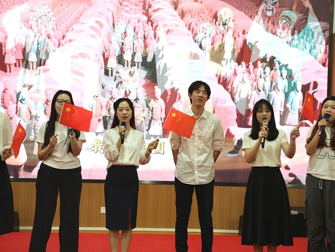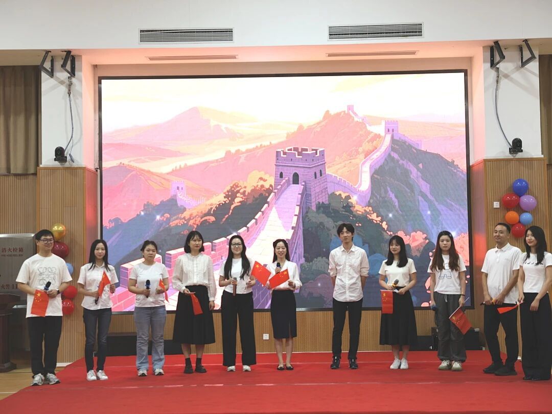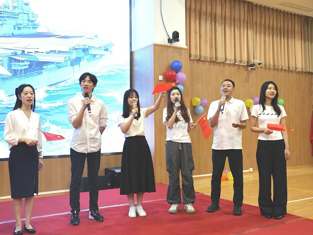 英语组和综合组的教师代表带来的歌曲《我爱你中国》,以高昂的旋律、真挚的情感表达了为祖国送上了赞美与祝福。