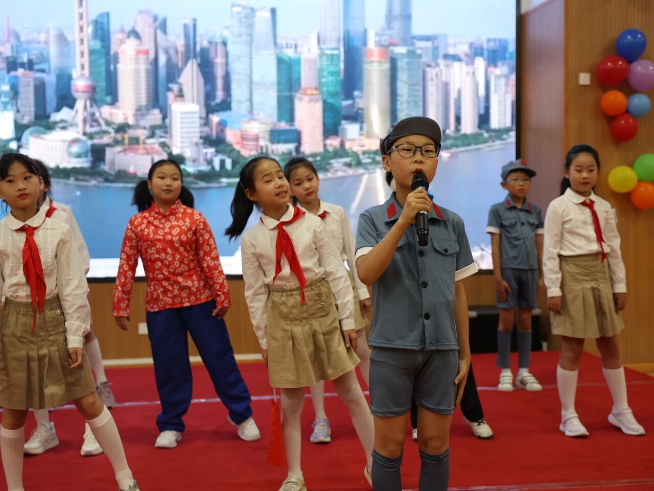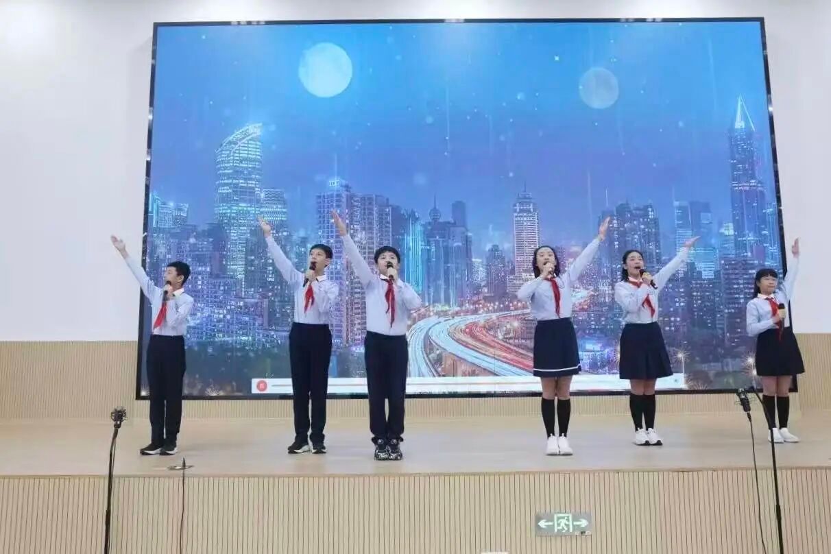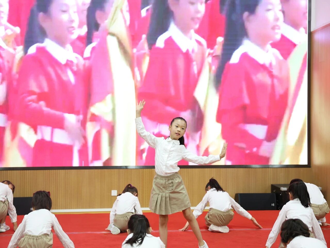 一年级同学用童谣《童心共筑梦》唱出稚嫩的爱国心。