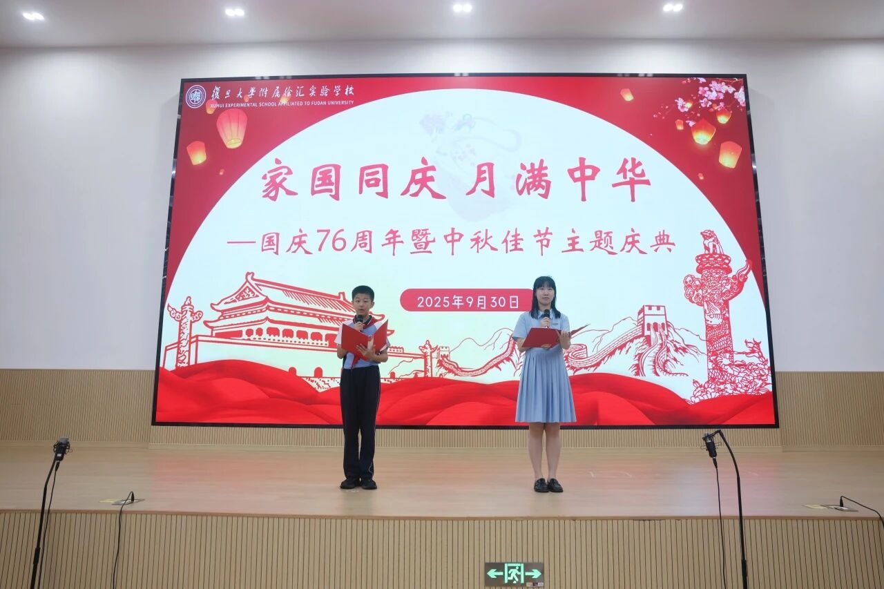 秋风轻拂校园,桂香漫入窗棂,当中华人民共和国76周年华诞邂逅中秋佳节,我校以“家国”为脉、以“成长”为笔,精心策划节庆主题活动。从小学部的童趣欢歌到初中部的青春礼赞,小复旦人携手将爱国情怀融入课堂内外,让“盛世华诞”的荣光与“月满中华”的温情,在校园里悠悠流淌。