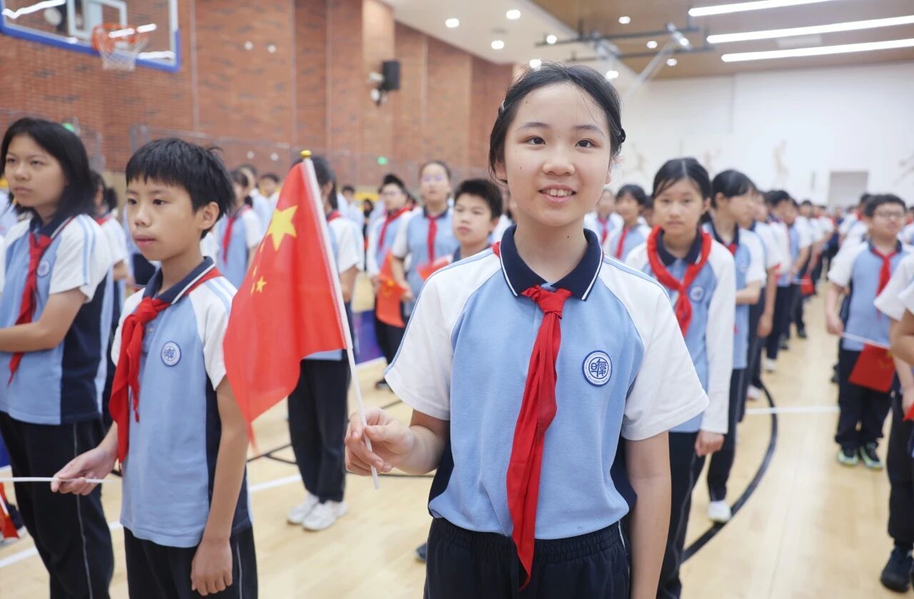 小小护旗手迈着整齐的步伐入场,全体师生肃立行注目礼,鲜红的国旗冉冉升起,在孩子们心中播下了“我是中国人”的骄傲种子。陆向荣副校长的致辞温暖而有力,他娓娓道来祖国的成长故事,鼓励孩子们争做“爱党爱国、勤奋好学、全面发展的新时代好少年”。