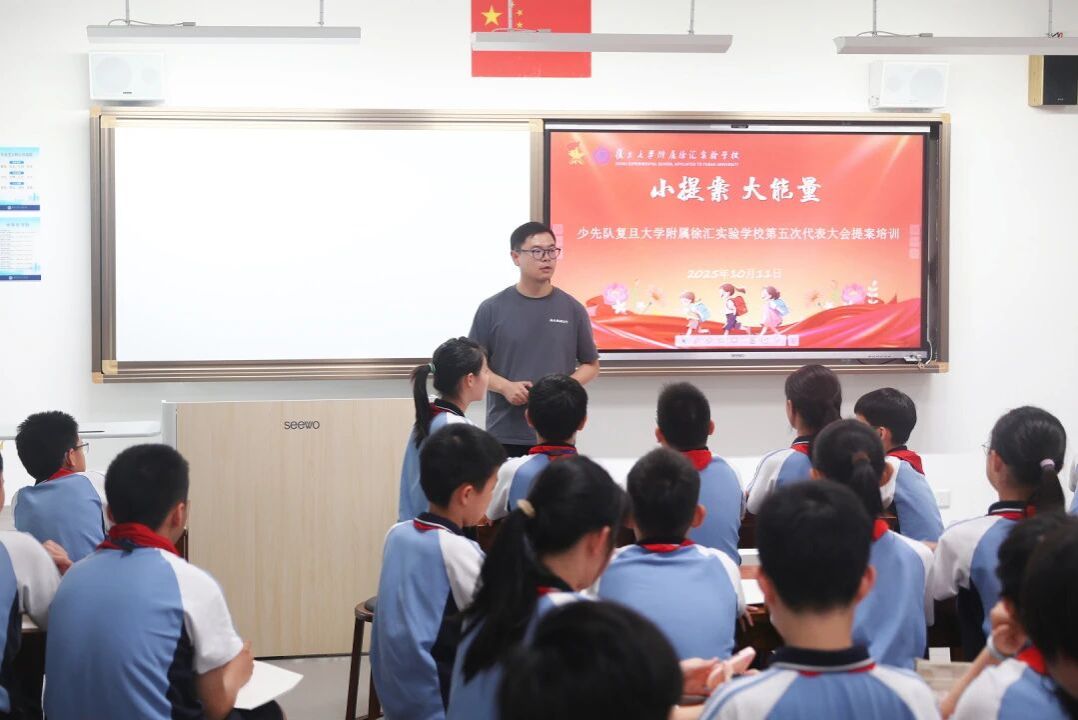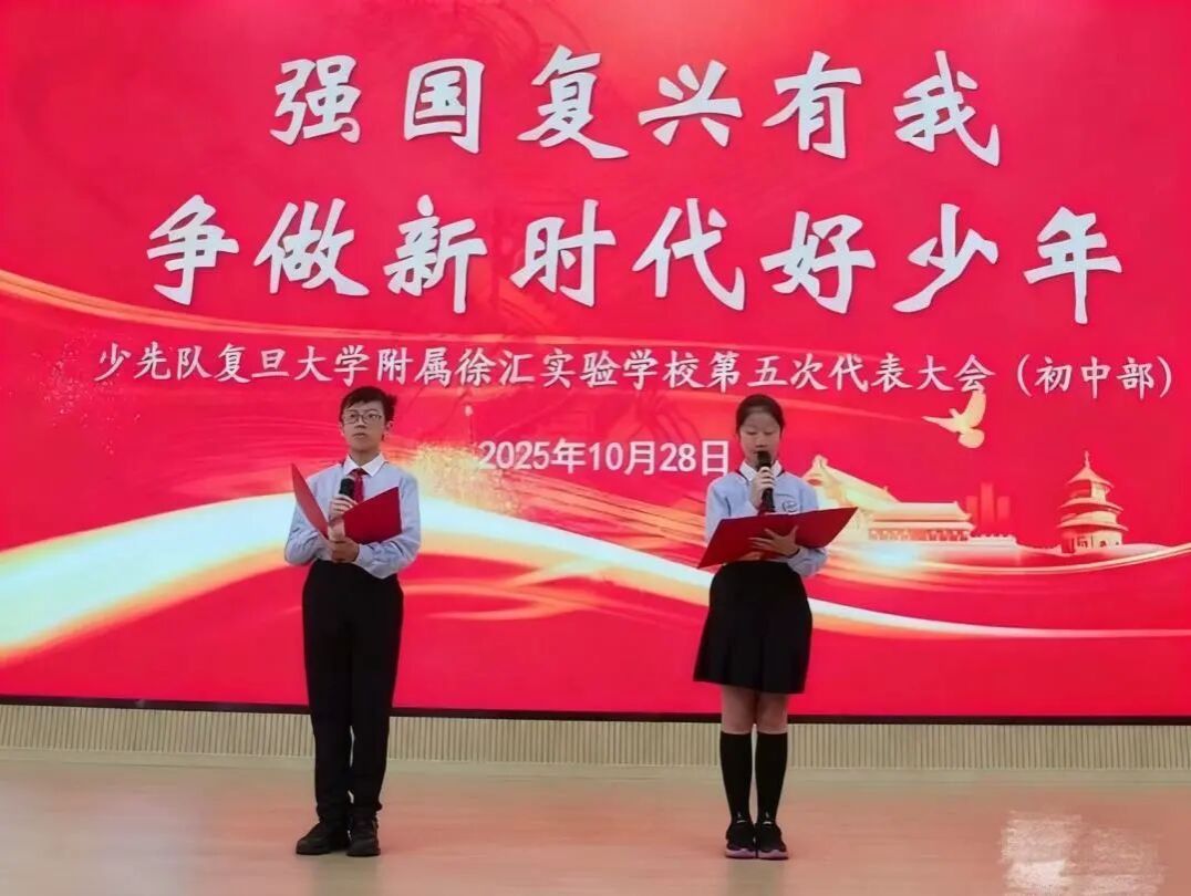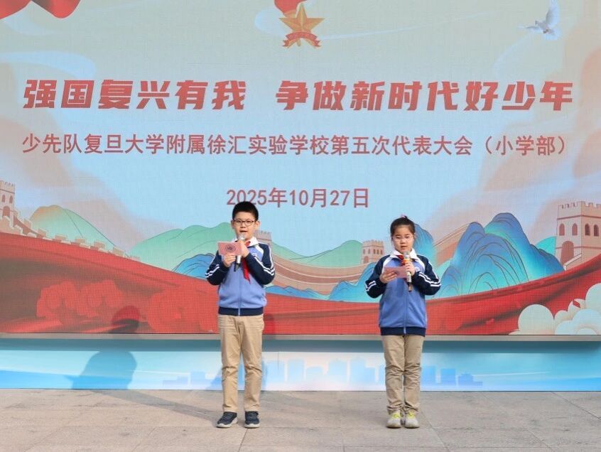 近日,少先队复旦大学附属徐汇实验学校第五次代表大会隆重举行,本次大会以“强国复兴有我,争做新时代好少年”为主题,紧密围绕贯彻落实习近平总书记第九次全国少代会贺信精神展开,旨在培养爱党爱国、勤奋好学、全面发展的新时代好少年。