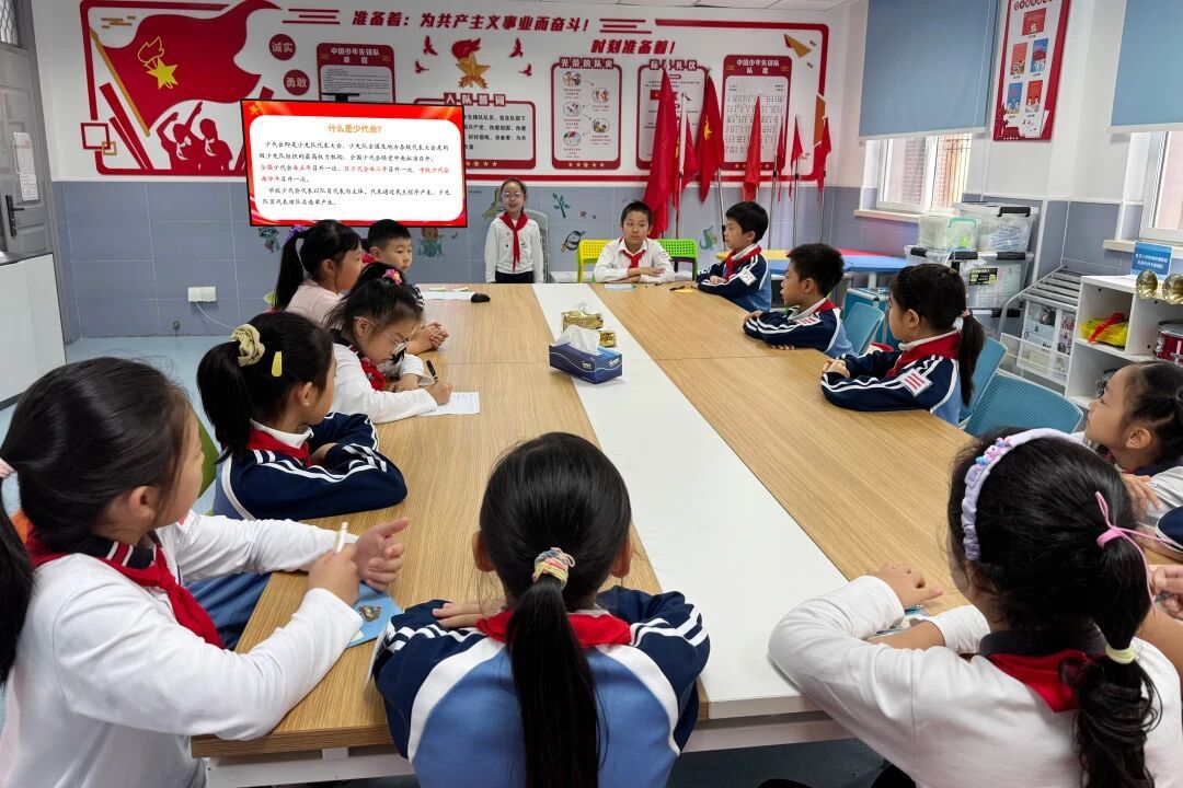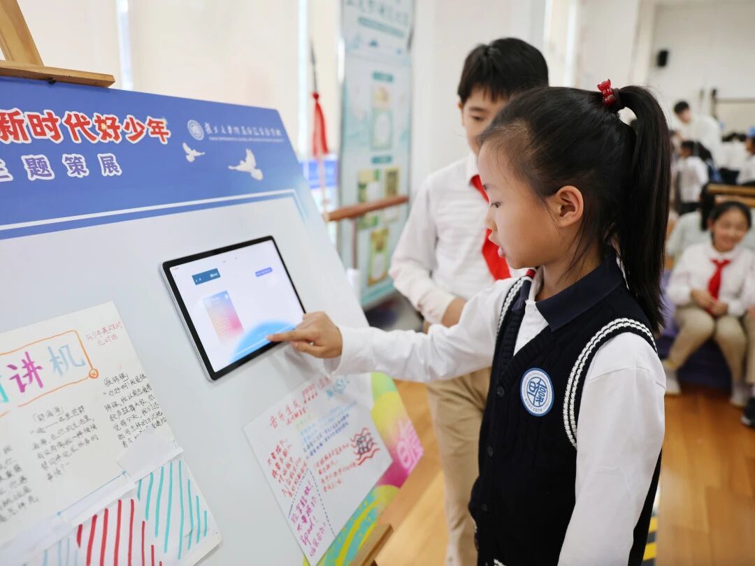 大会前期,学校举行了“星星之火可以燎原——队史中的榜样先锋”主题策展活动,通过项目化学习深化队员对队史的认知,提升综合能力,激发光荣感和组织归属感。活动中,队员们借助AI等数字智能工具、查找书籍、影视片段,深入了解中国少年儿童运动史及少先队的发展历程,整理了不同历史时期的“少年先锋”事迹。