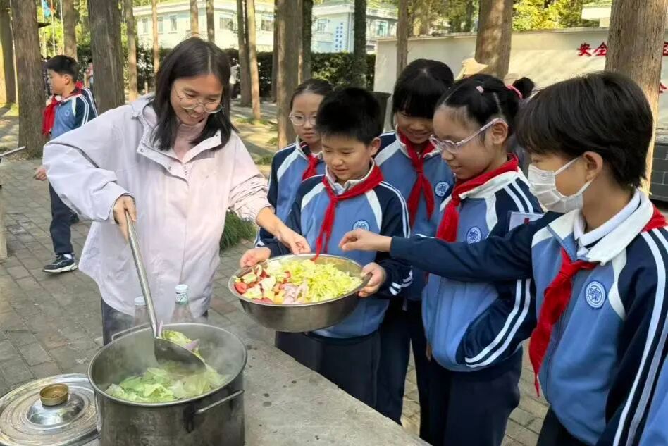 山野作厨,协作成炊。洗切烹煮间,孩子们十指染上泥土清香;薪火相传里,竹筒饭焖出合作甘甜。当炊烟袅袅融入暮色,劳动的诗意与友情的温度,已酿成最难忘的秋日滋味。