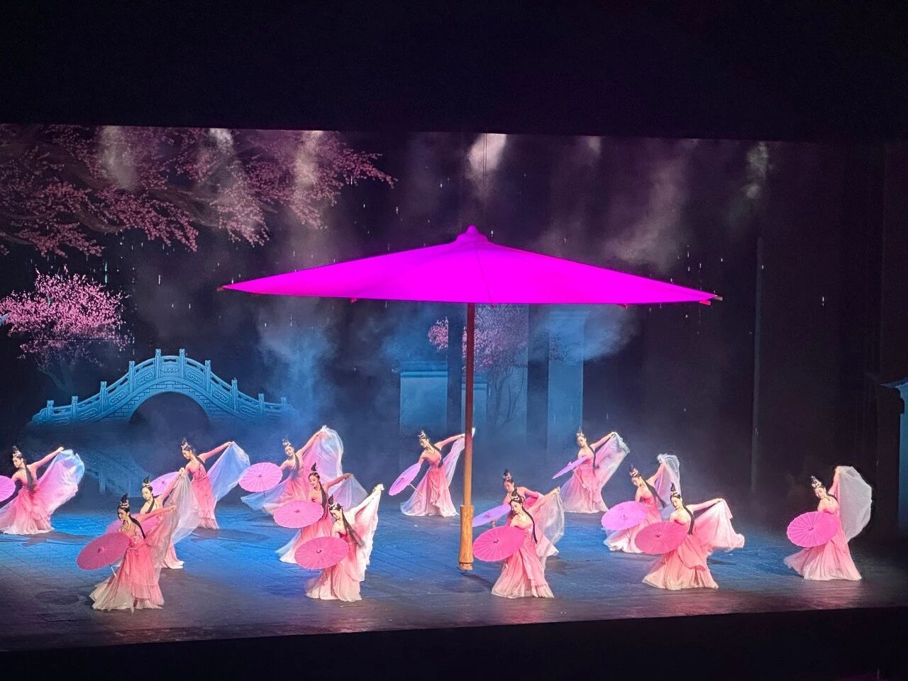 活动的重头戏,无疑是观看被誉为“一生必看的演出”——《上海千古情》。当灯光暗下,音乐响起,同学们瞬间被带入一个波澜壮阔的时空隧道。
