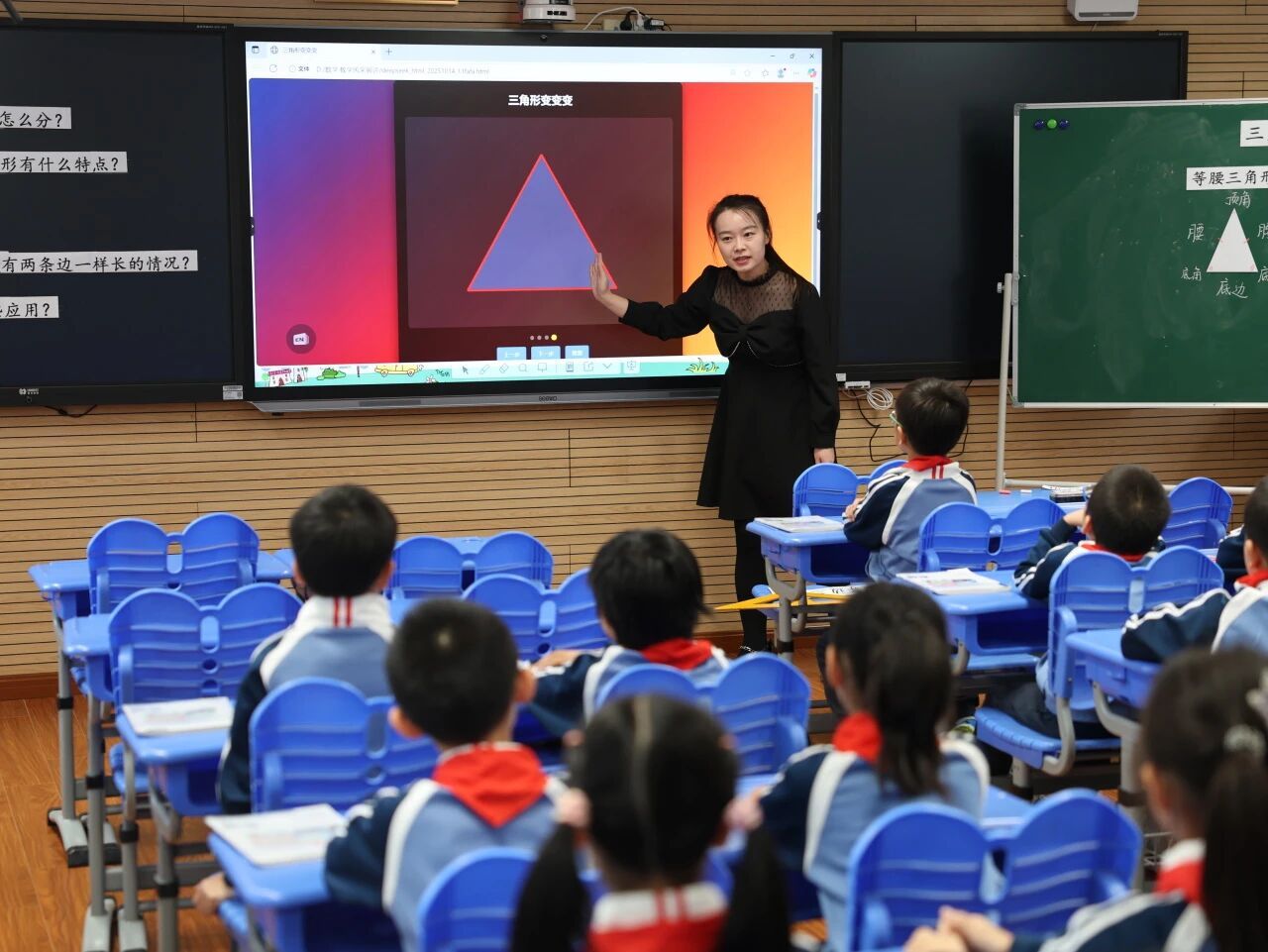 以“动”启思,培养高阶思维。教师们围绕数学学科素养目标,通过创设情境、密切联系生活实际、以小组合作为主要学习方式,引导学生经历概念的产生过程、结论的推导过程,在操作、辨析与推理中不断提升数学思维。课后,围绕评委们提出的“如何让活动充分发挥课堂实效”“怎样设计分层任务满足不同学生需求”等问题,教师们结合教学反思,清晰作答,呈现出极具思维深度的思考。