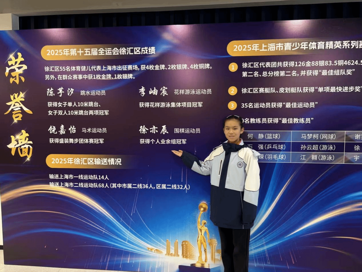近日,中华人民共和国第十五届运动会群众比赛围棋项目决赛圆满落幕。复旦大学附属徐汇实验学校六年级5班学生徐亦辰凭借精湛棋艺与顽强斗志,在围棋女子个人业余组赛场脱颖而出,成功斩获金牌;同时,她助力上海队斩获全民团体赛亚军,为上海市、徐汇区赢得了宝贵荣誉!