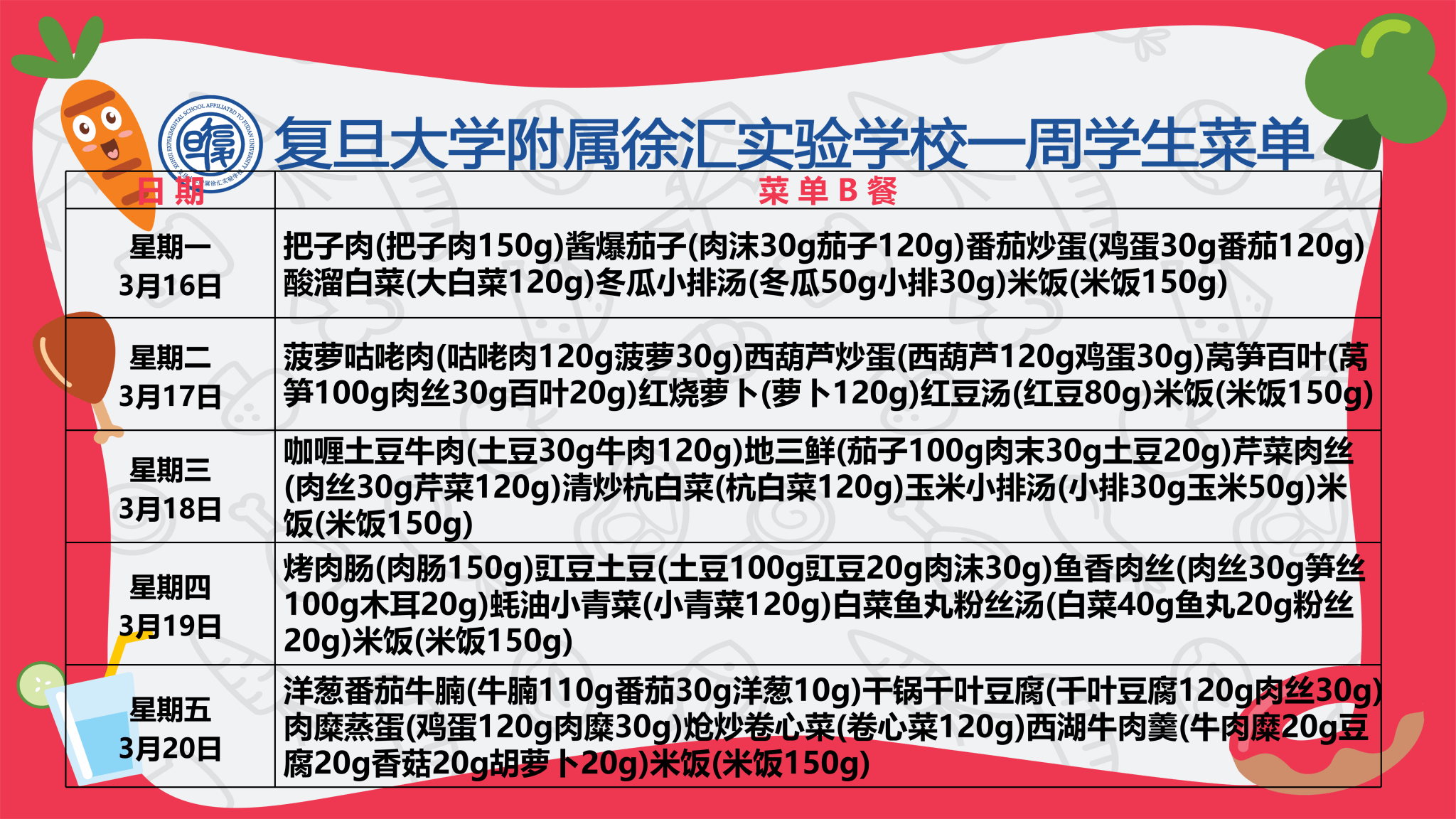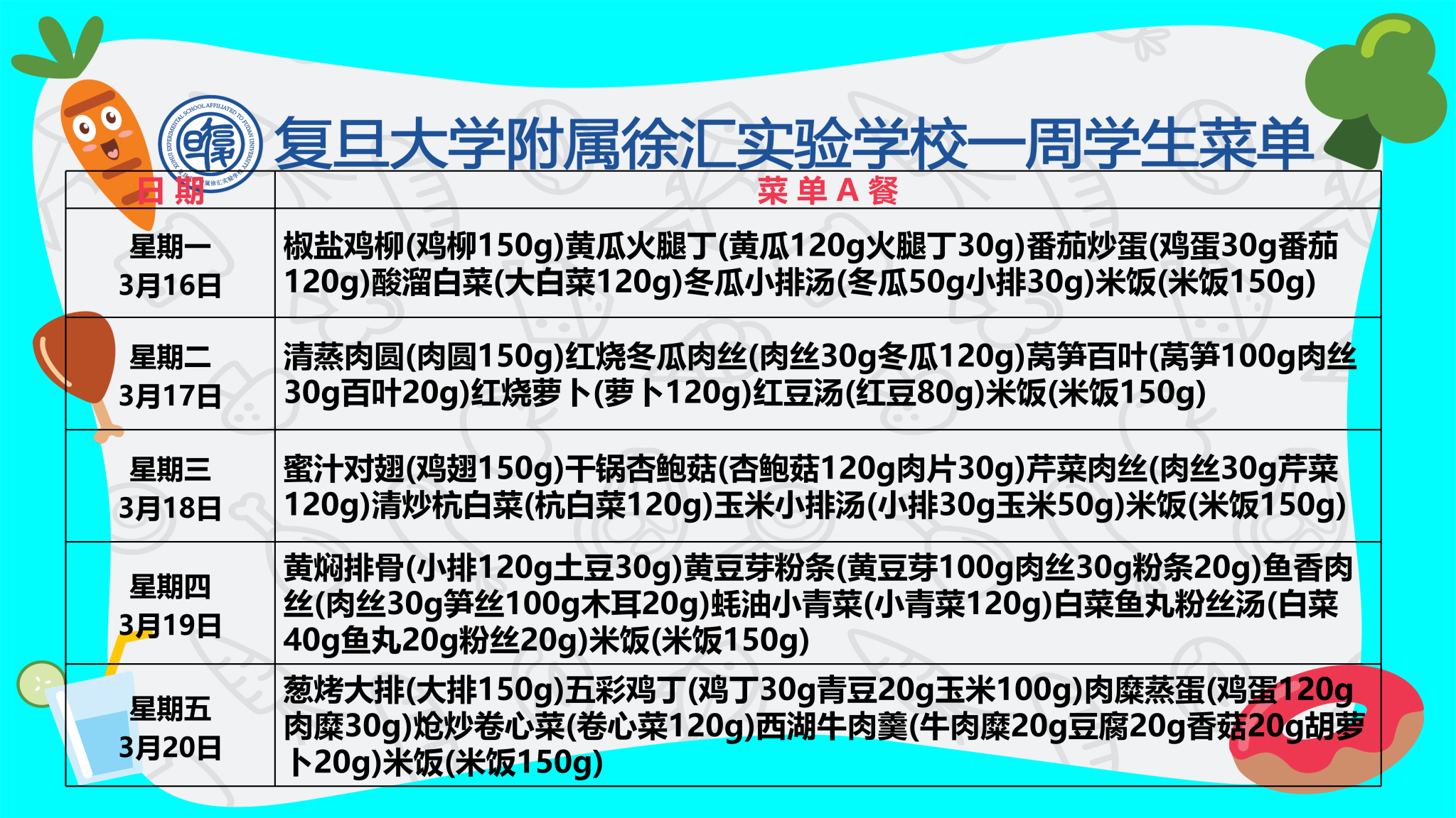 复旦大学附属徐汇实验学校学生菜单 第三周_初中部(2026年3月16日-2026年3月20日)