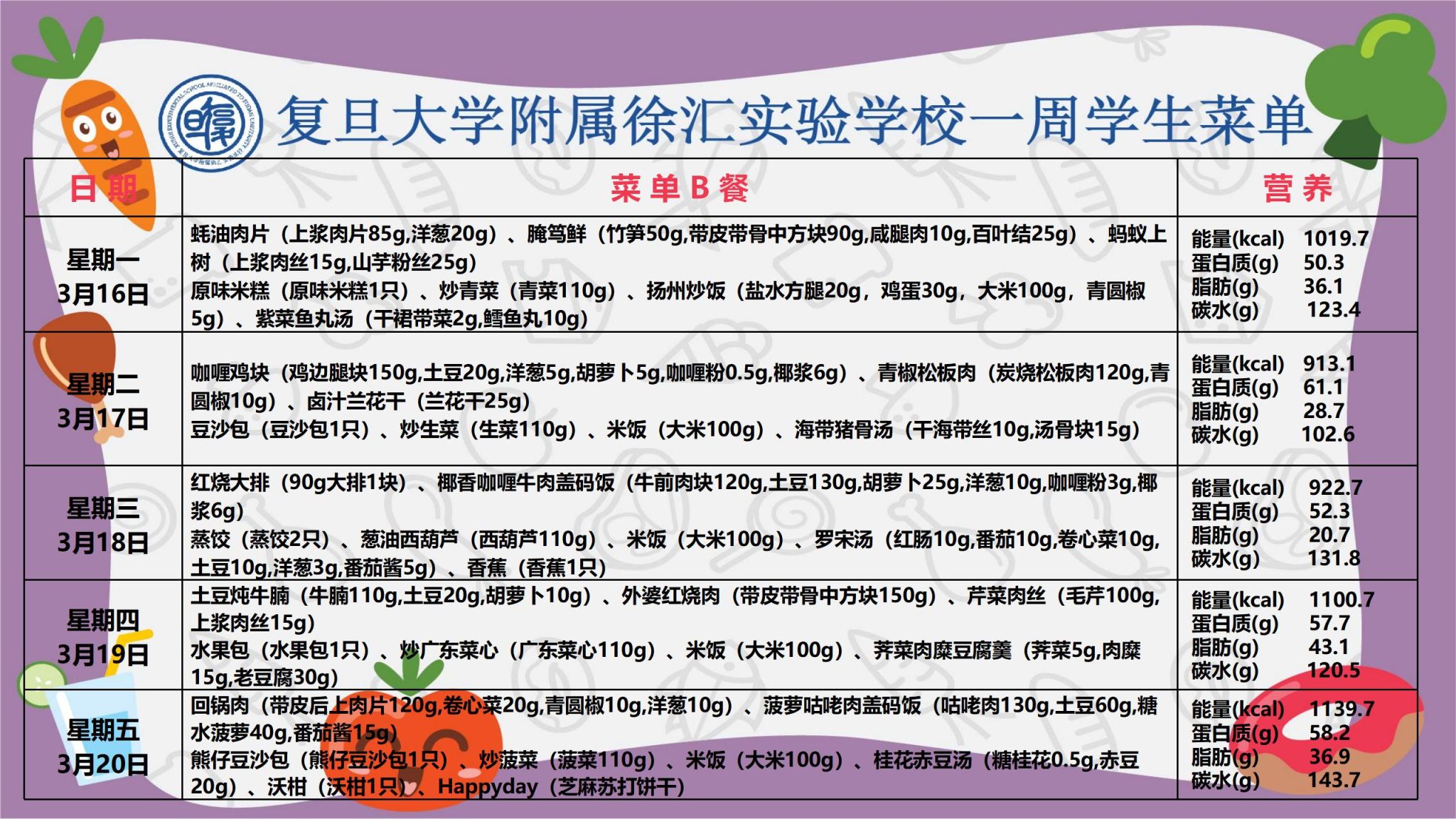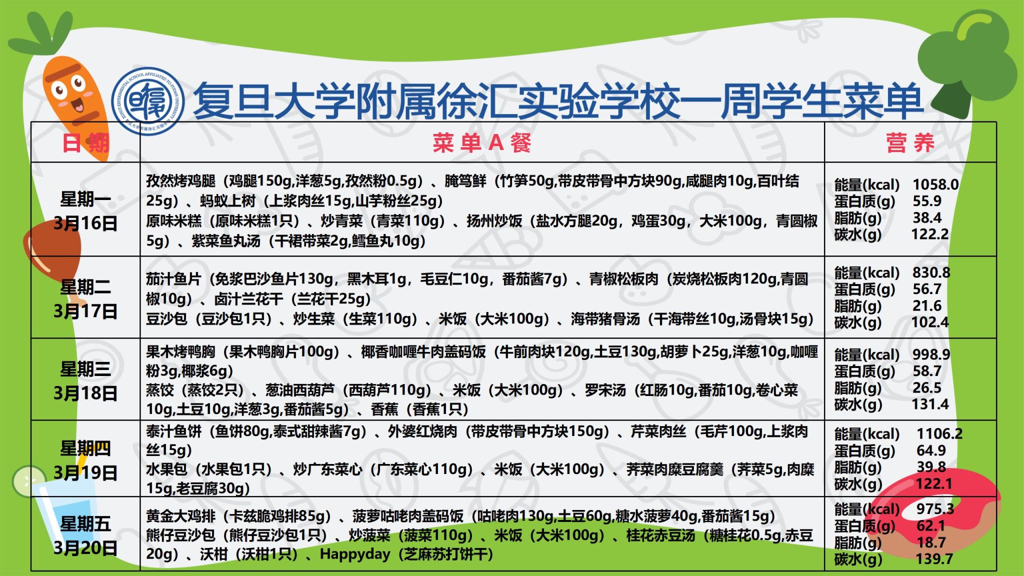 复旦大学附属徐汇实验学校学生菜单 第三周_小学部(2026年3月16日-2026年3月20日)
