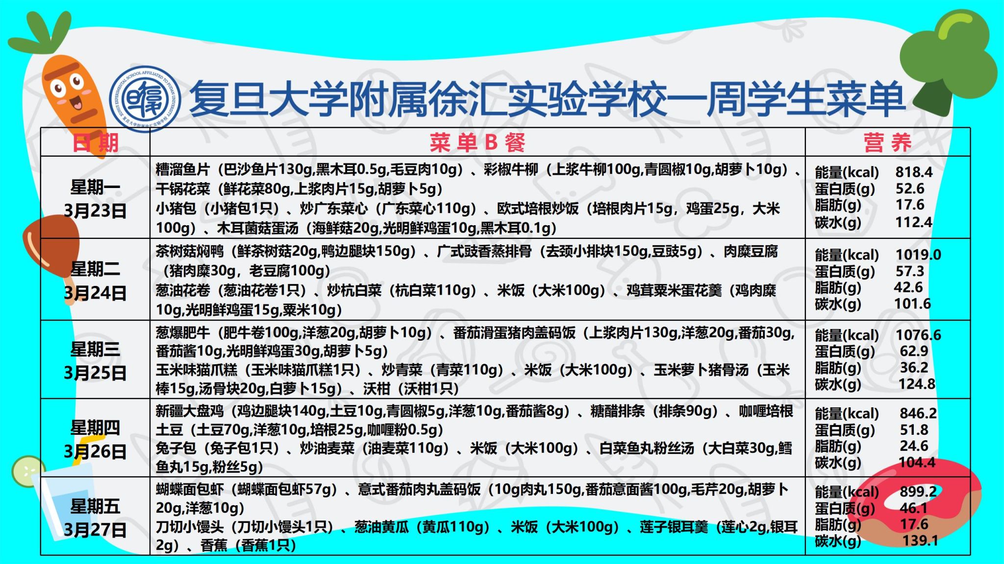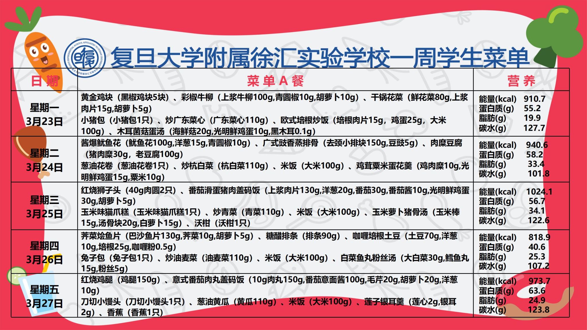 复旦大学附属徐汇实验学校学生菜单 第四周_小学部(2026年3月23日-2026年3月27日)