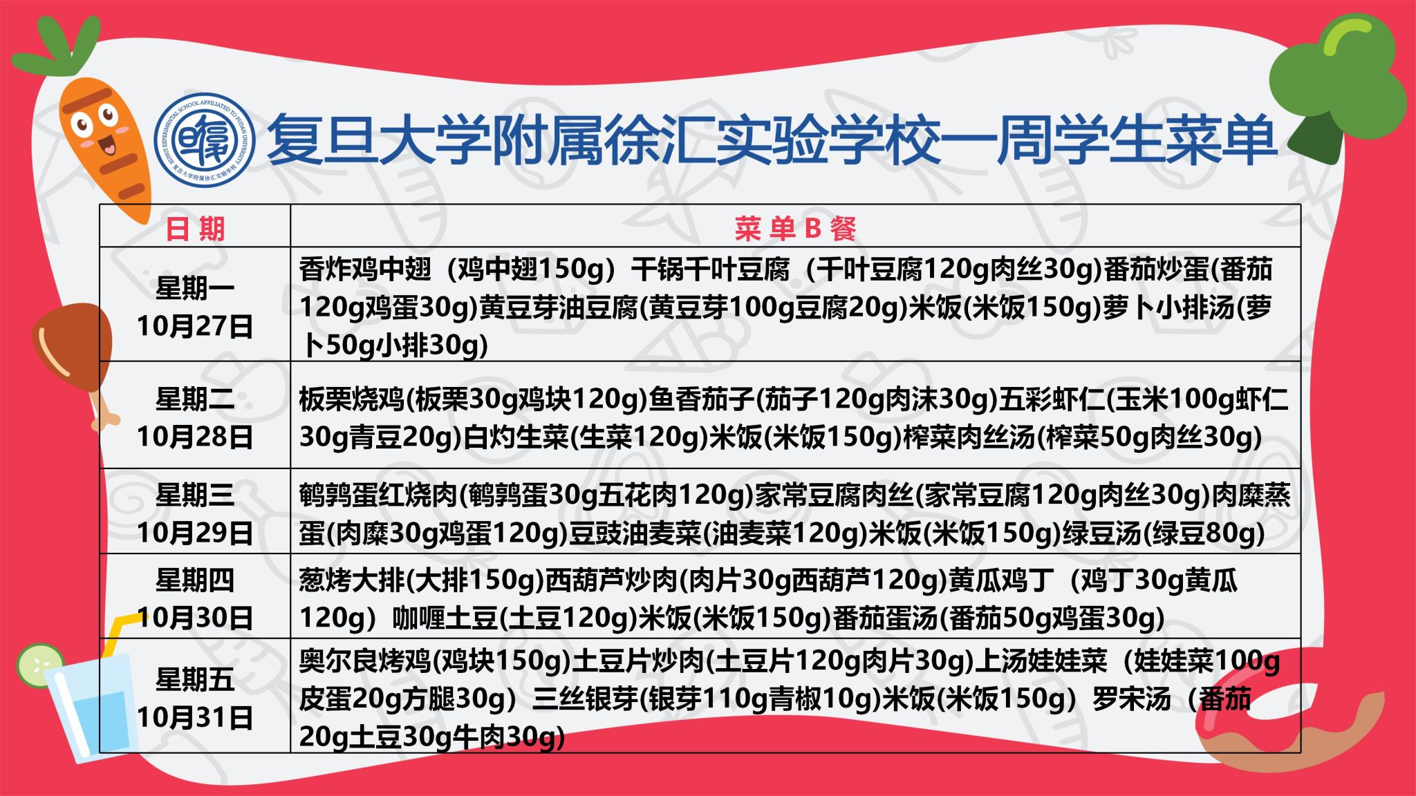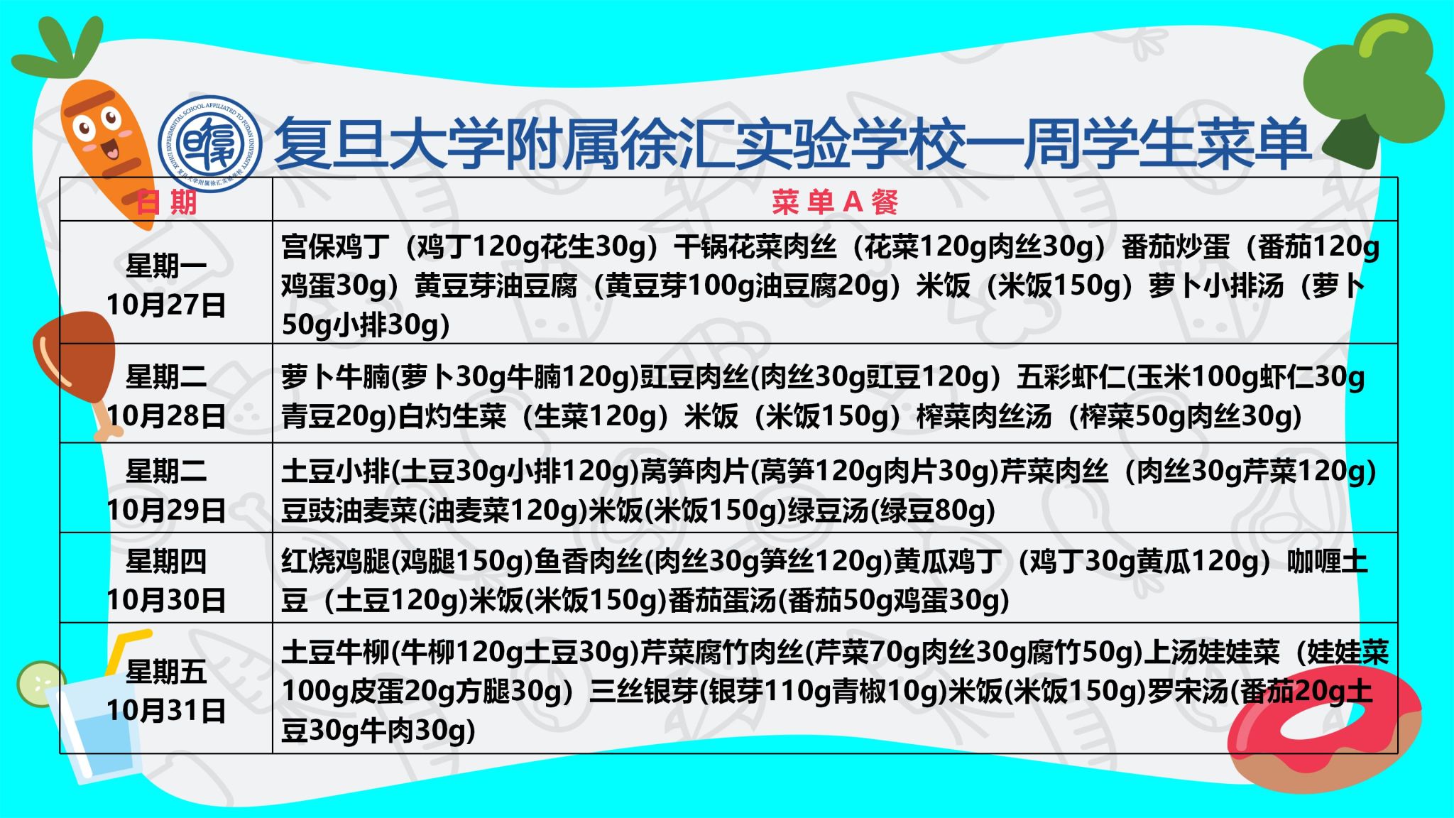 复旦大学附属徐汇实验学校学生菜单 第九周_初中部(2025年10月27日-10月31日)