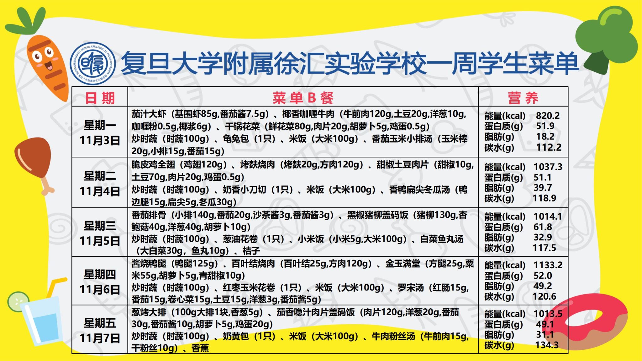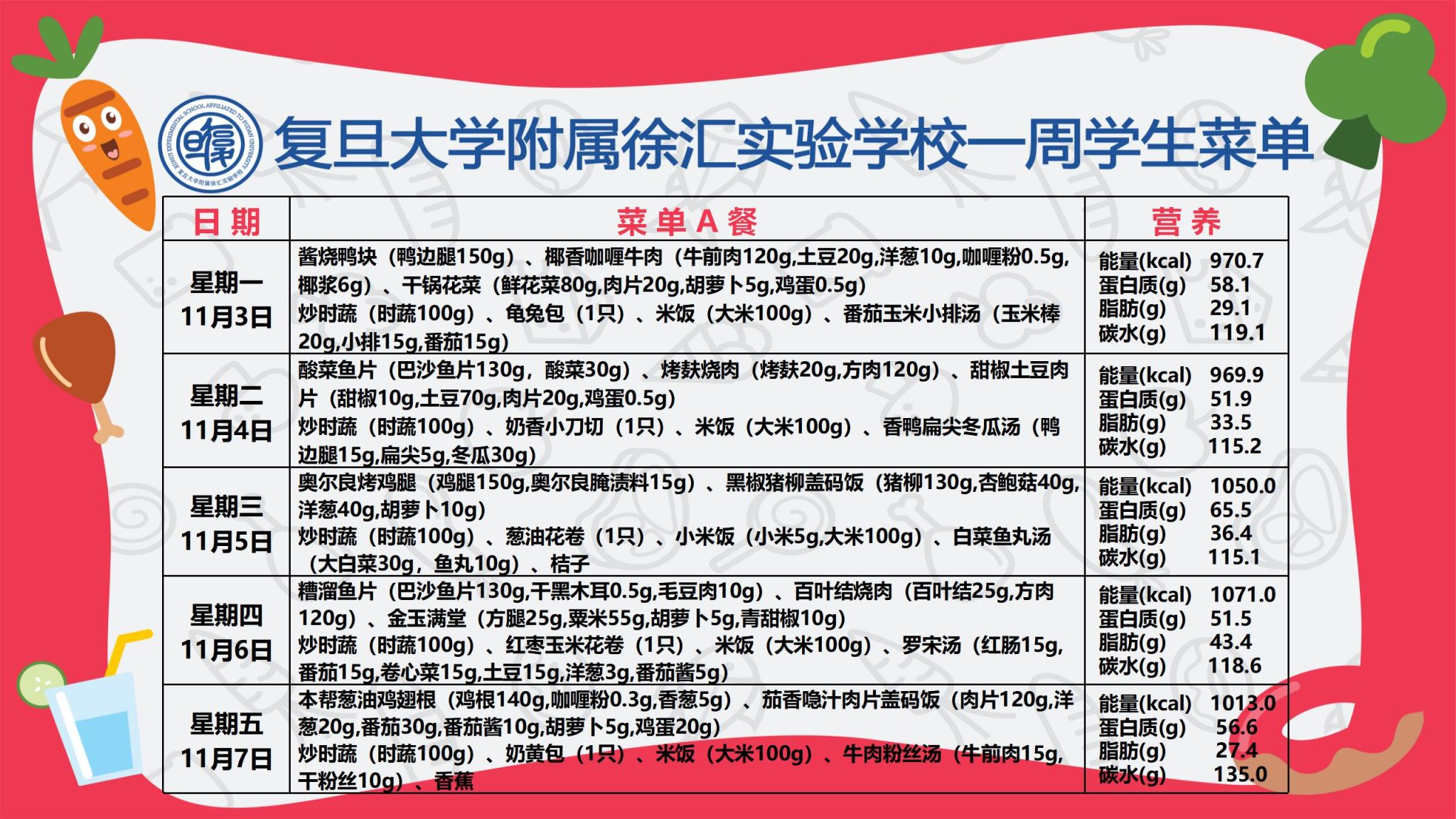 复旦大学附属徐汇实验学校学生菜单 第十周_小学部(2025年11月3日-11月7日)
