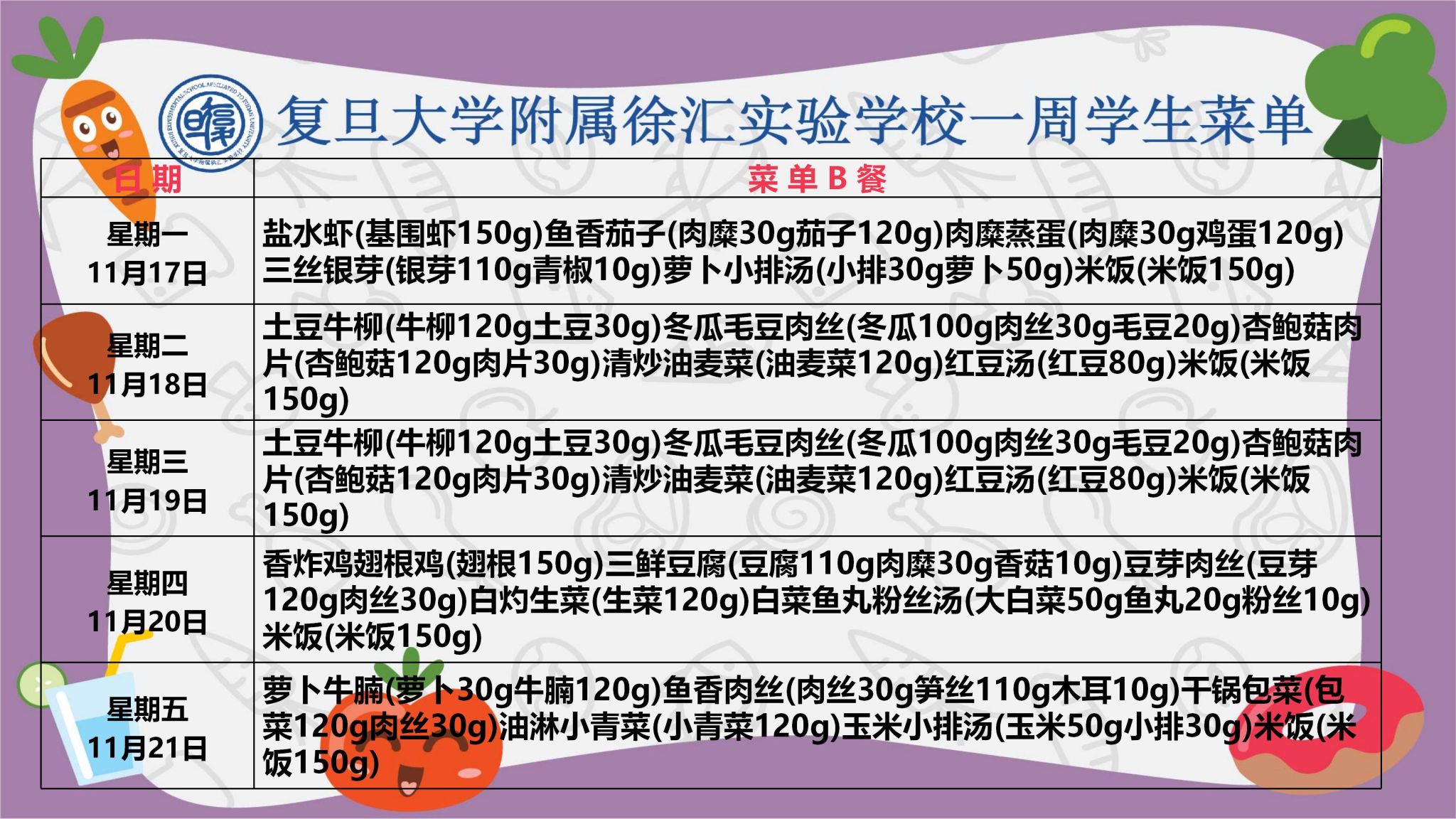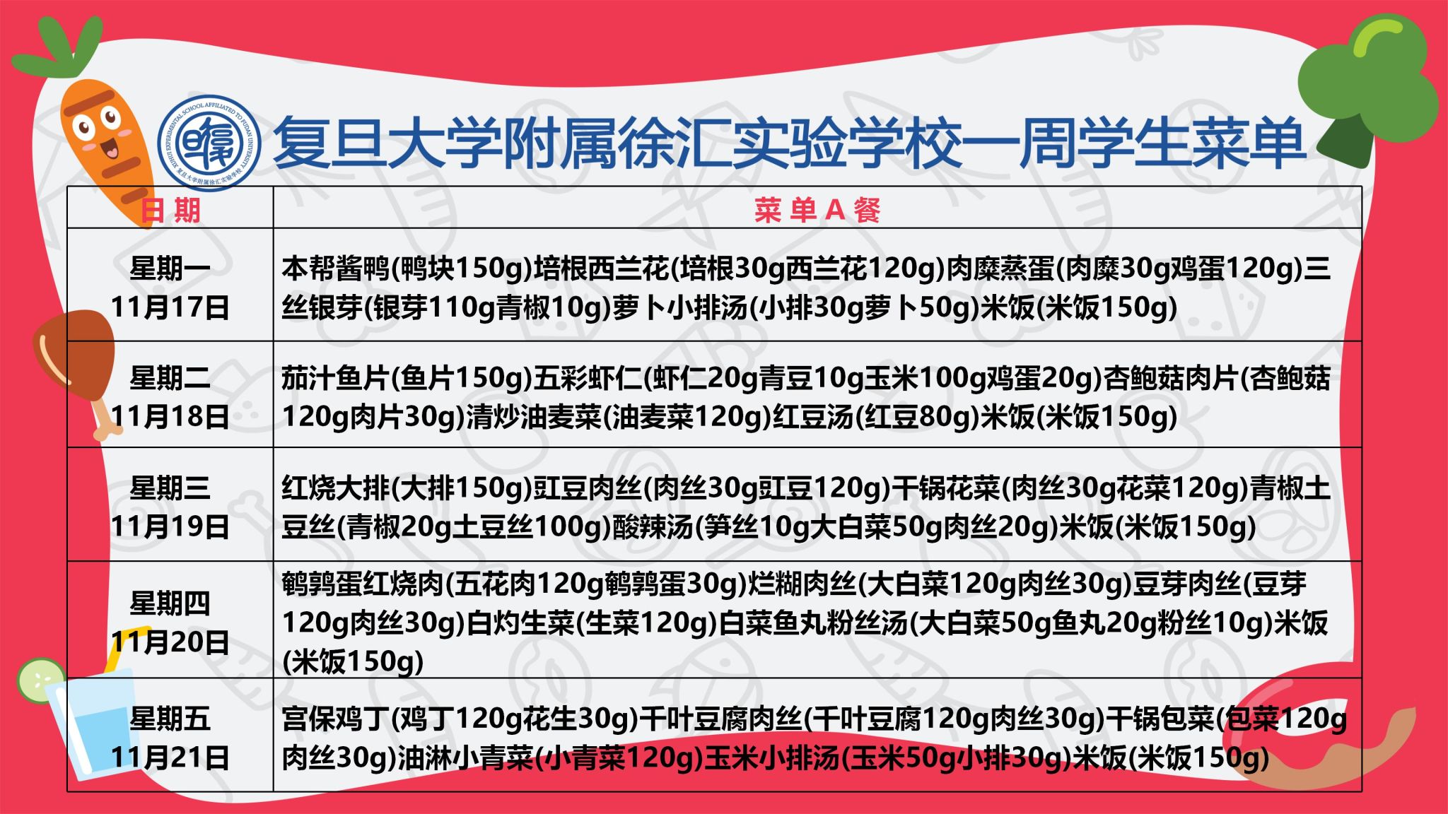 复旦大学附属徐汇实验学校学生菜单 第十二周_初中部(2025年11月17日-11月21日)