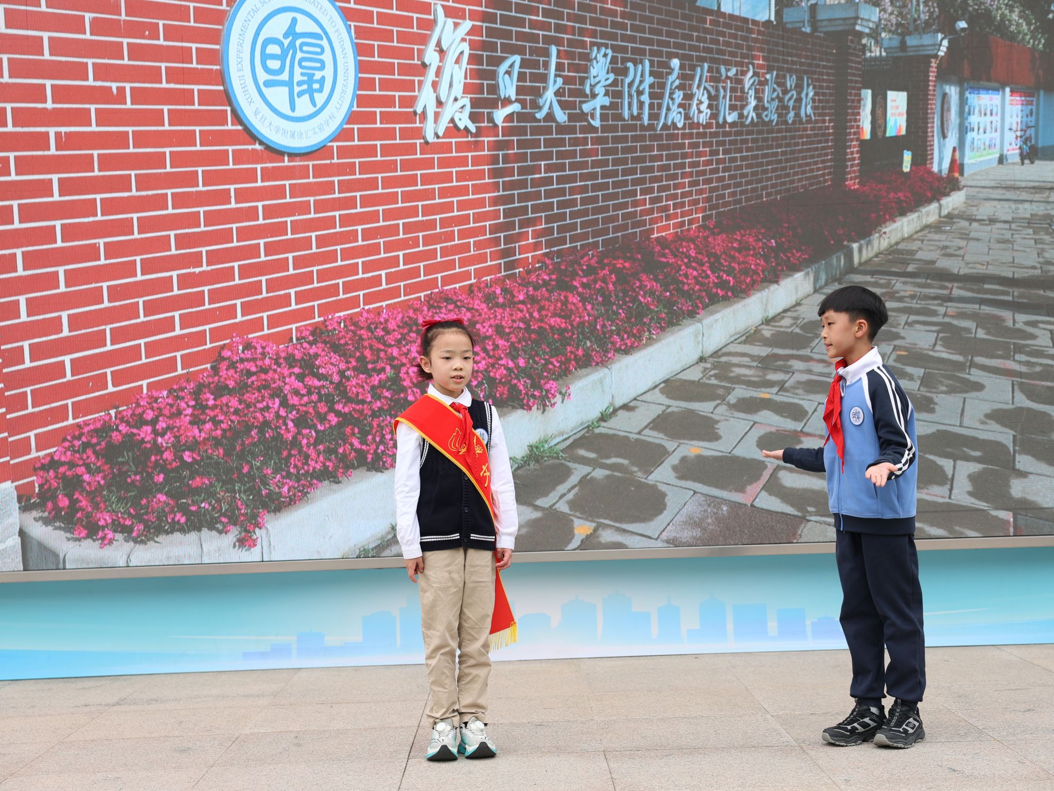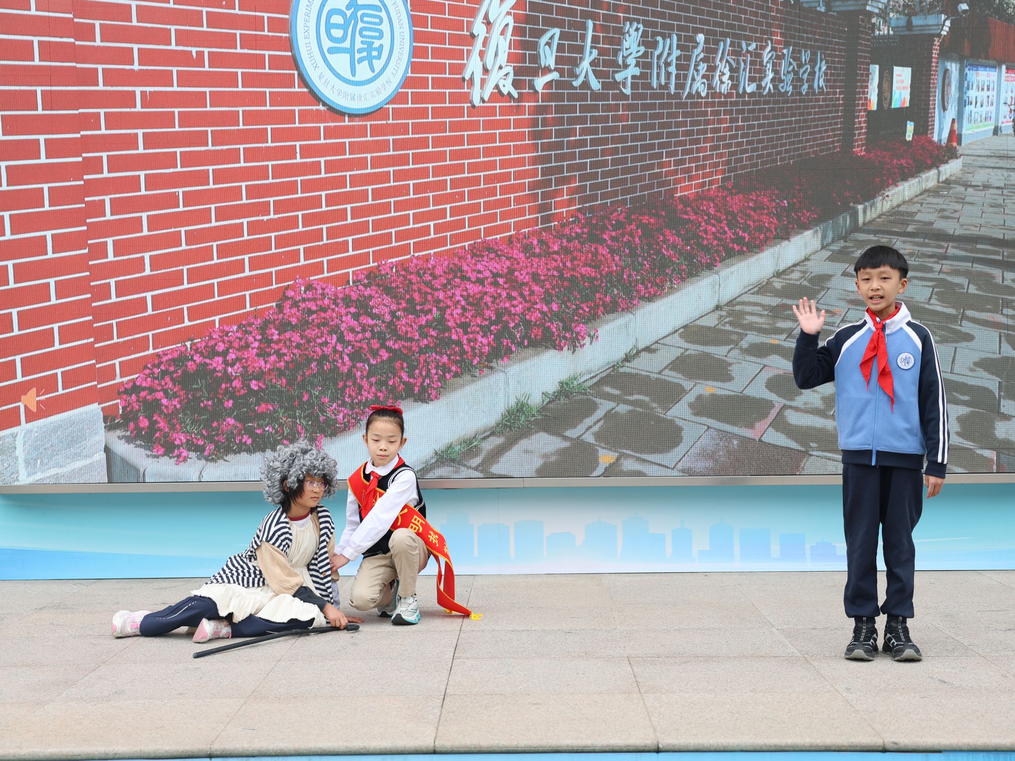 春和景明,万象更新。复旦大学附属徐汇实验学校全体师生精神抖擞,齐聚操场,共同迎来了以“文明礼仪”为主题的第4周升旗仪式。主持人吴悠同学以清脆响亮的声音宣布仪式开始。在庄严肃穆的国歌声与昂扬向上的校歌声中,五星红旗与校旗先后冉冉升起,全体师生心怀敬意,肃立行礼。飘扬的红蓝旗帜与晨光相映,象征着文明之光与礼仪之风在菁菁校园中熠熠生辉。