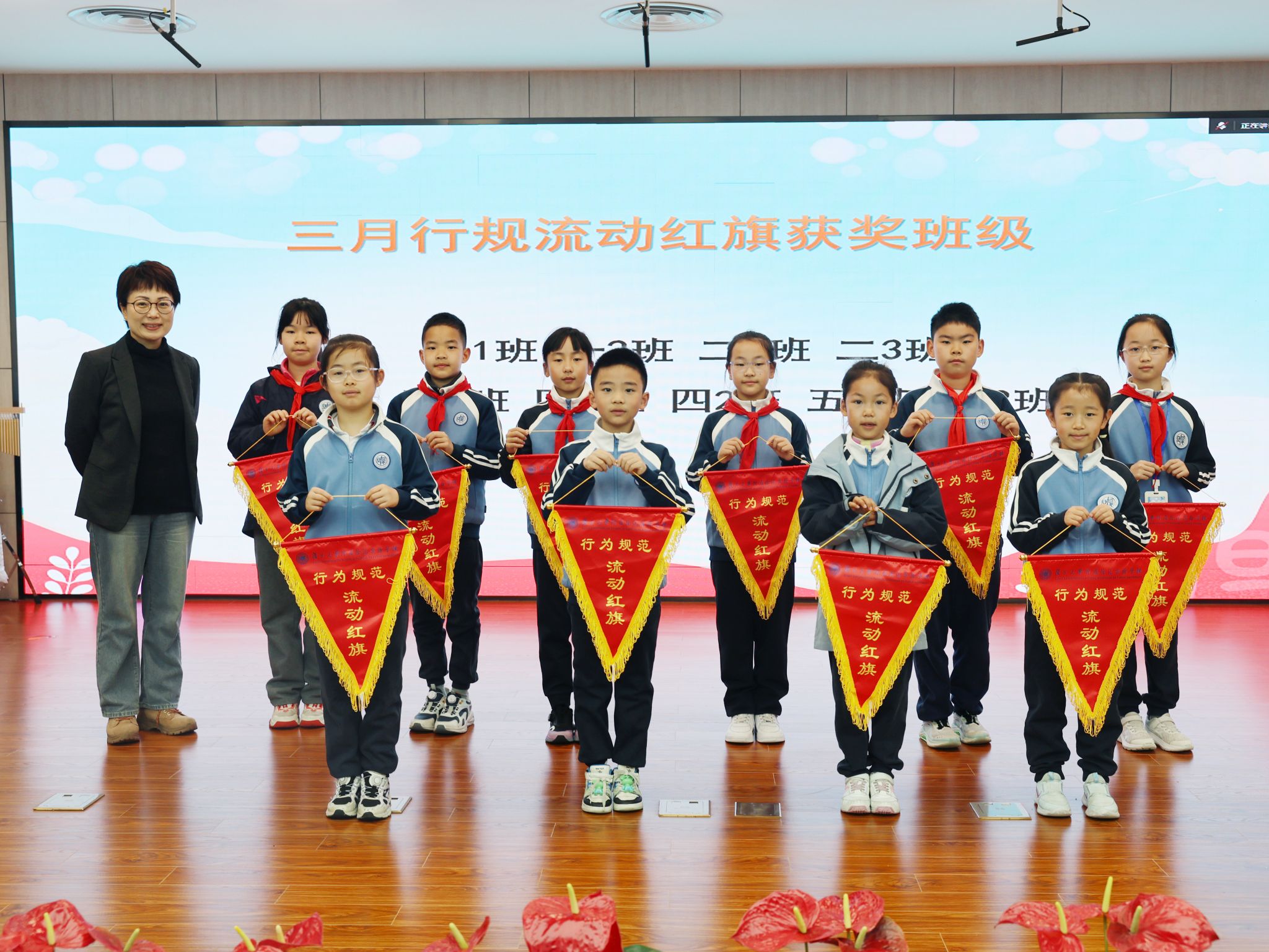 春风拂面,红旗招展。复旦大学附属徐汇实验学校全体师生怀揣敬意,肃立于操场,共同迎来以“缅怀英烈,传承红色基因”为主题的第5周升旗仪式。主持人史松清同学以庄重的声音宣布仪式开始。全体师生面向国旗,高唱国歌,注视五星红旗冉冉升起;随后,校旗在校歌声中徐徐升起。红蓝旗帜在晨光中飘扬,仿佛诉说着历史的回响与新时代的征程,象征着革命精神与青春使命的交接。