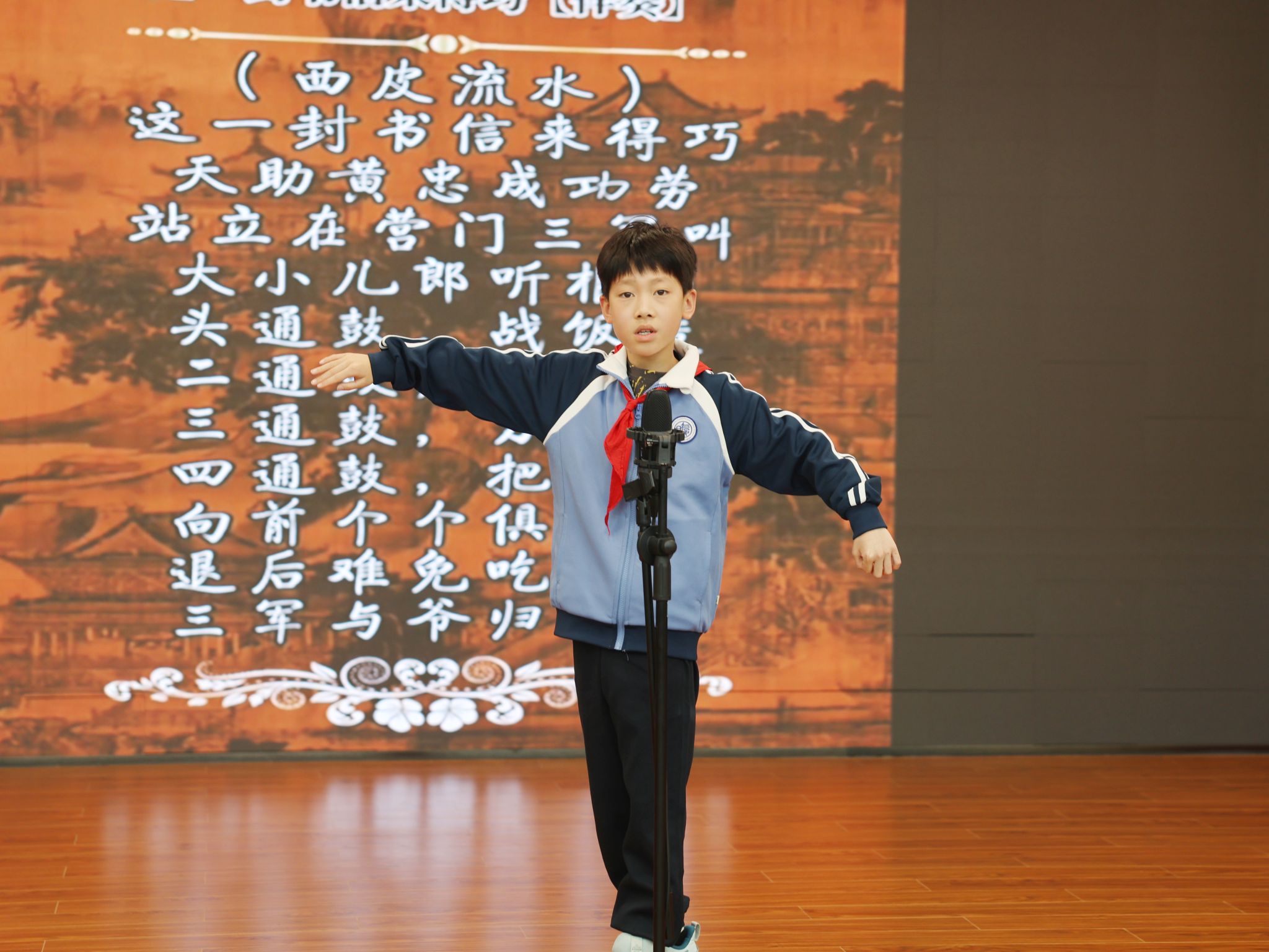 从激昂的朗诵中回过神来,东方国粹的韵音响彻校园。经典京剧《定军山》选段的演绎,不仅展示了中华文化的博大精深,更将戏曲中蕴含的忠勇精神与英雄气节直观呈现,让民族文化的瑰宝与红色基因的传承在梨园雅韵中交相辉映。