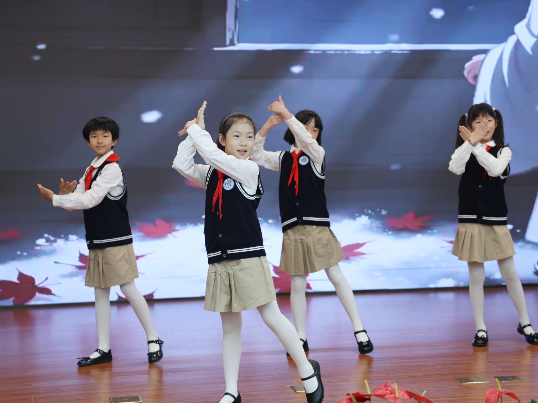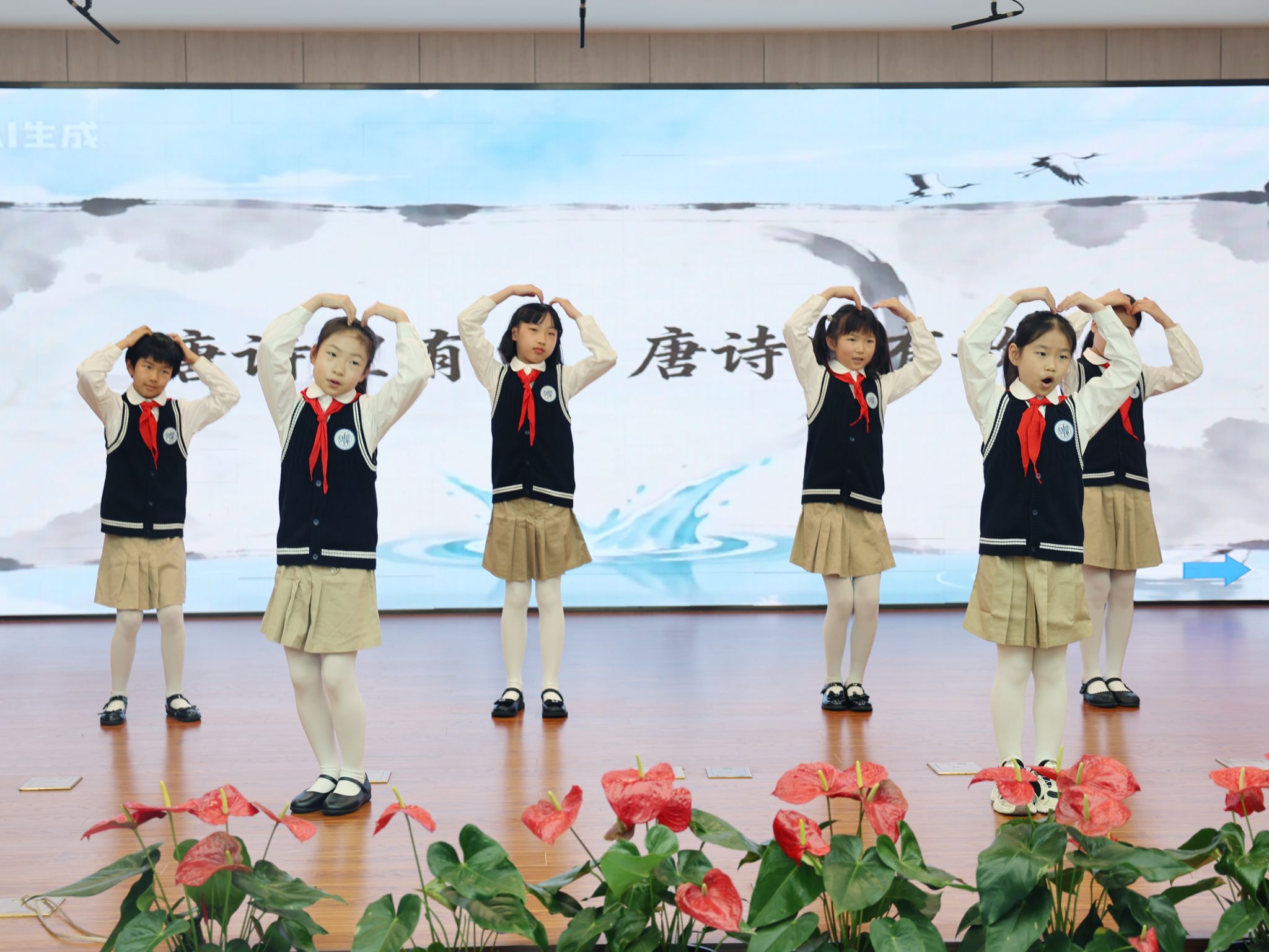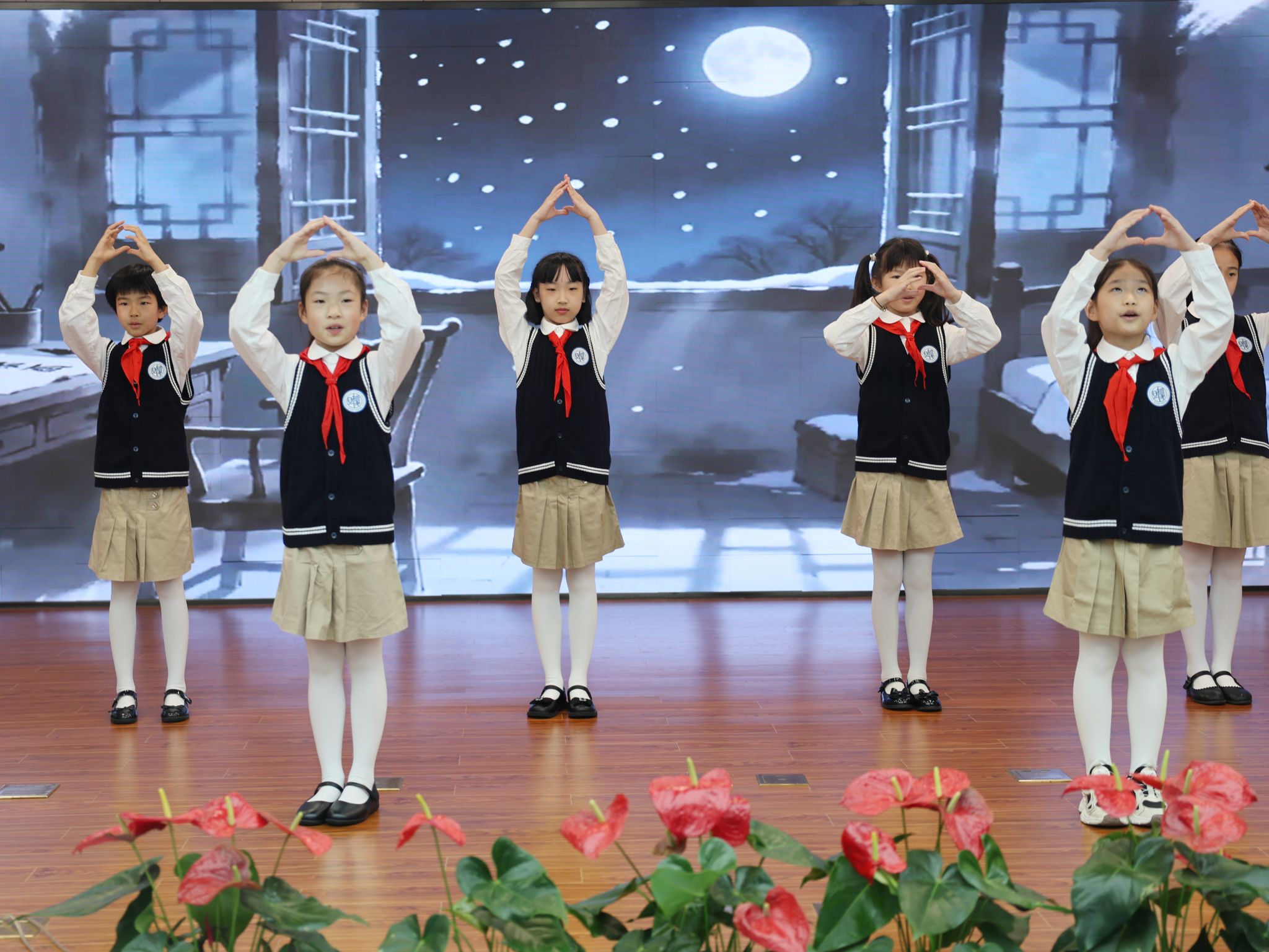 “人工智能是我们探索未来的钥匙,而红色基因是我们成长的精神底色。”三(4)班的同学们以充满想象力的诗朗诵,构建了一个独特的叙事空间。节目大胆设想并生动演绎了AI技术如何“读懂”跨越千年的诗词歌赋,如何理解那字里行间跃动的“一颗颗滚烫的中国心”,让冰冷的科技被赋予解读历史、传承忠魂的温暖力量,创新性地诠释了科技与人文的深度融合。