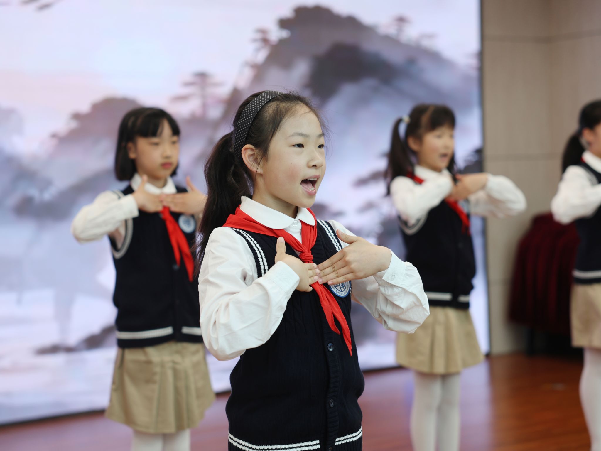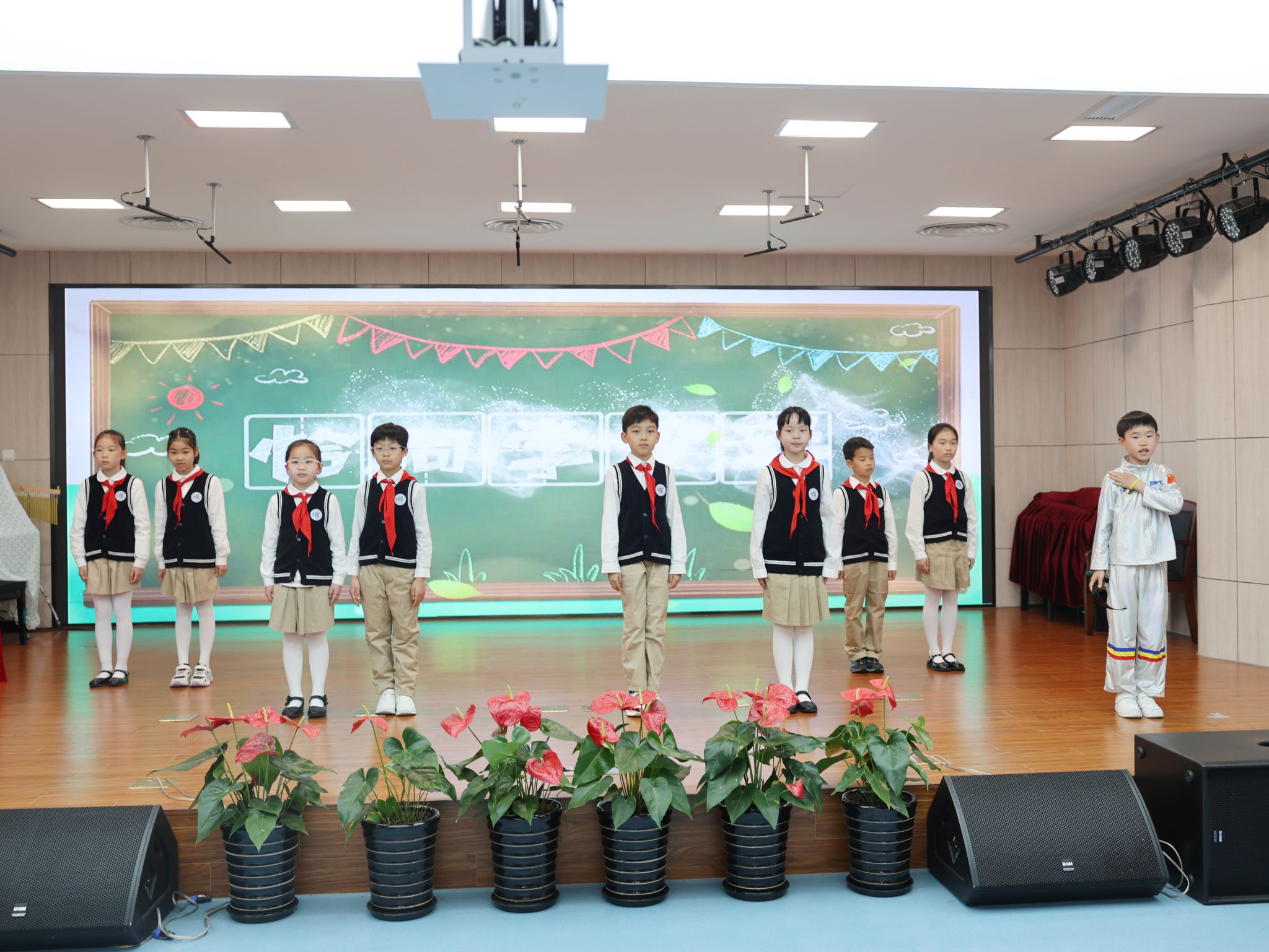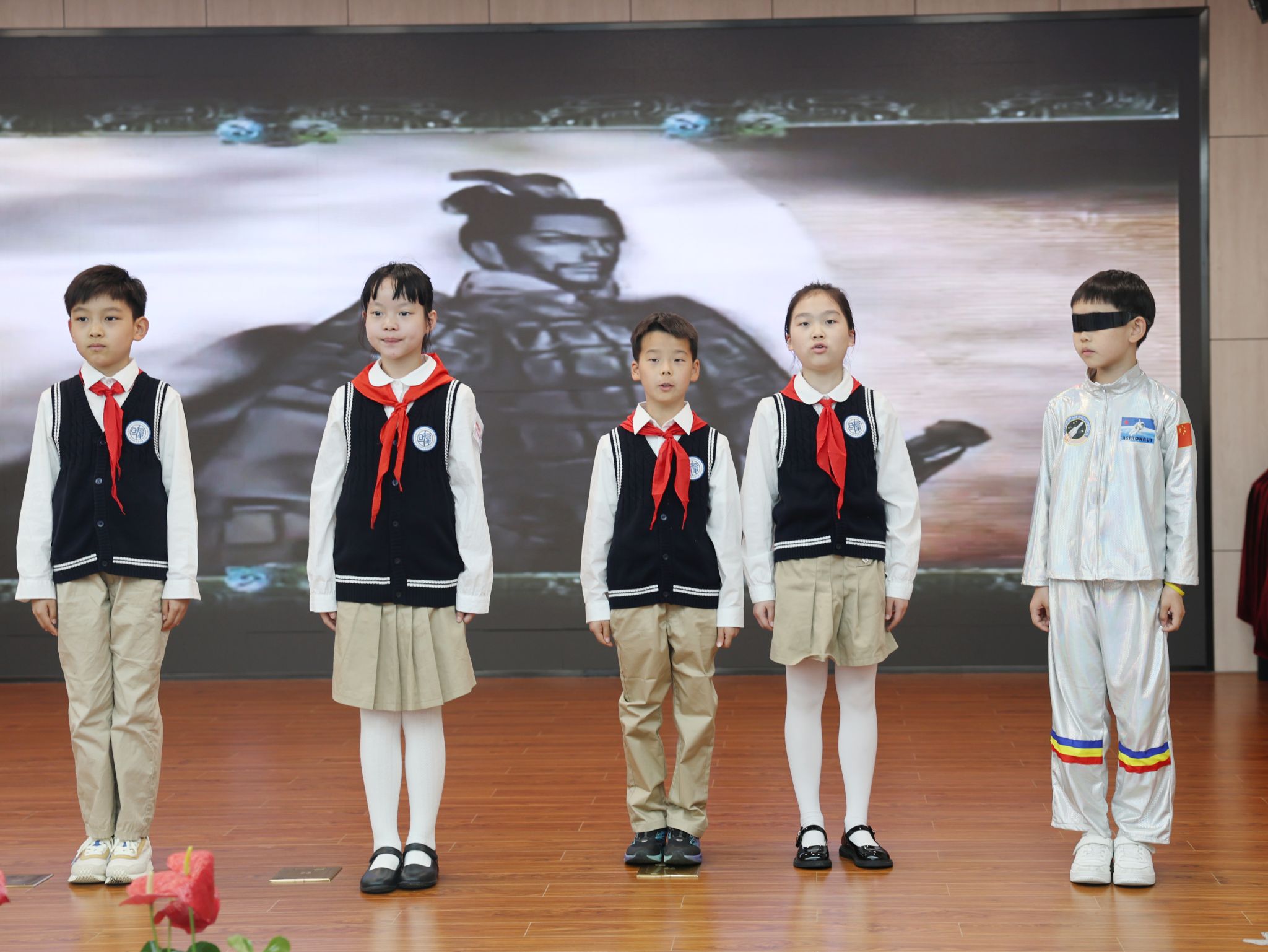 “人工智能是我们探索未来的钥匙,而红色基因是我们成长的精神底色。”三(4)班的同学们以充满想象力的诗朗诵,构建了一个独特的叙事空间。节目大胆设想并生动演绎了AI技术如何“读懂”跨越千年的诗词歌赋,如何理解那字里行间跃动的“一颗颗滚烫的中国心”,让冰冷的科技被赋予解读历史、传承忠魂的温暖力量,创新性地诠释了科技与人文的深度融合。