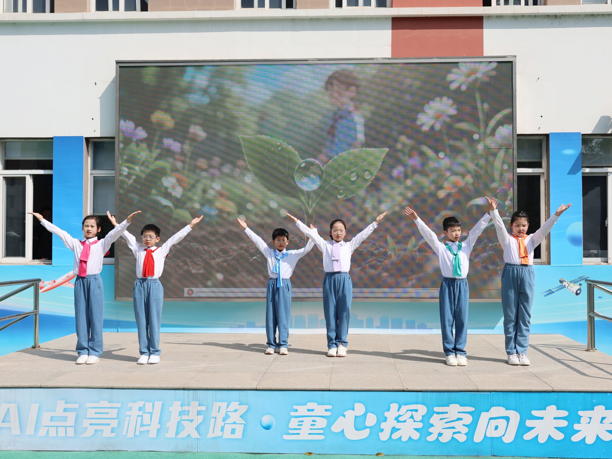 “天是地球的外套,碧水是地球的血脉,净土是地球的脊梁。”三(5)班同学们的深情朗诵,勾勒出一幅生机勃勃的家园画卷。诗句中既有对自然之美的礼赞,也蕴含着对守护蓝天碧水、共建美丽中国的坚定承诺,唤醒了在场每一位师生对地球母亲的责任感。