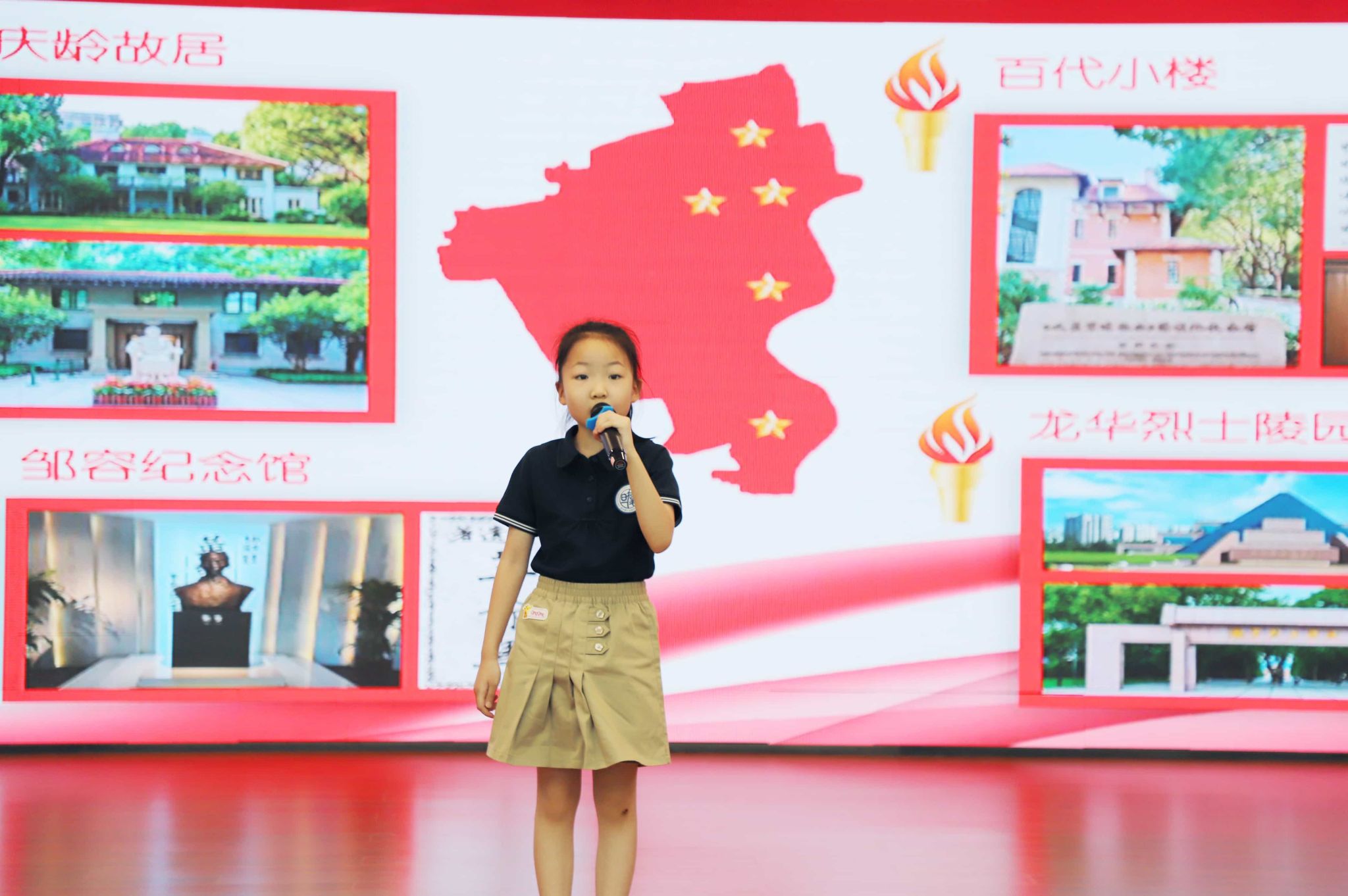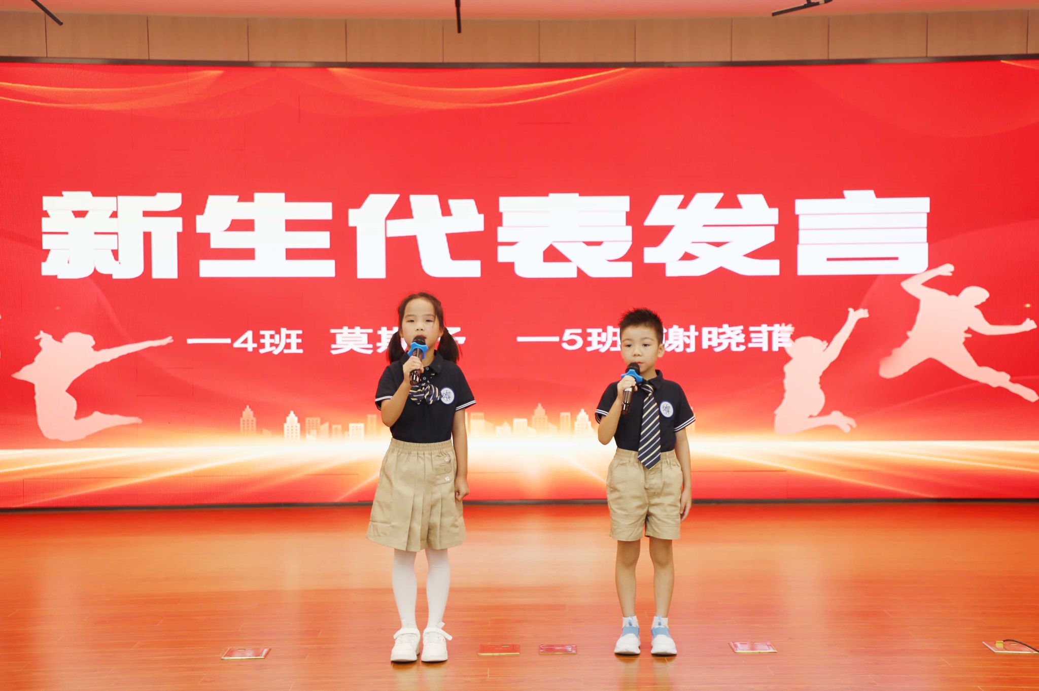 一(4)班莫期予、一(5)班谢晓菲宣言:"今日以复旦为荣,明日复旦以我为傲!"清澈童声诠释新一代复旦人的志气。