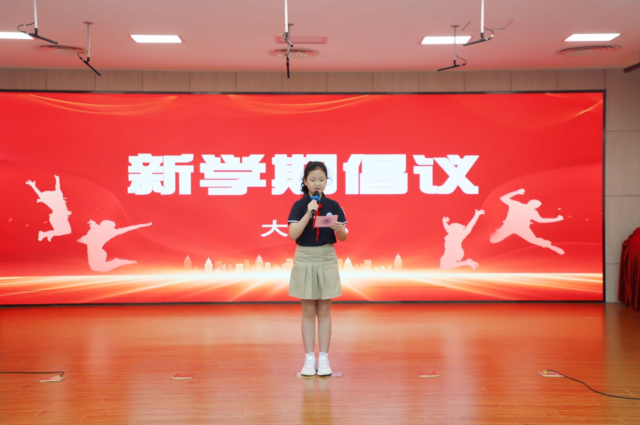 典礼尾声,大队部发布新学期倡议书:学思践悟——深耕课堂主阵地,争当"博学笃志"好学子;知行合一——参与劳动实践,传承红色基因;强健体魄——每天运动一小时,锤炼意志品格。