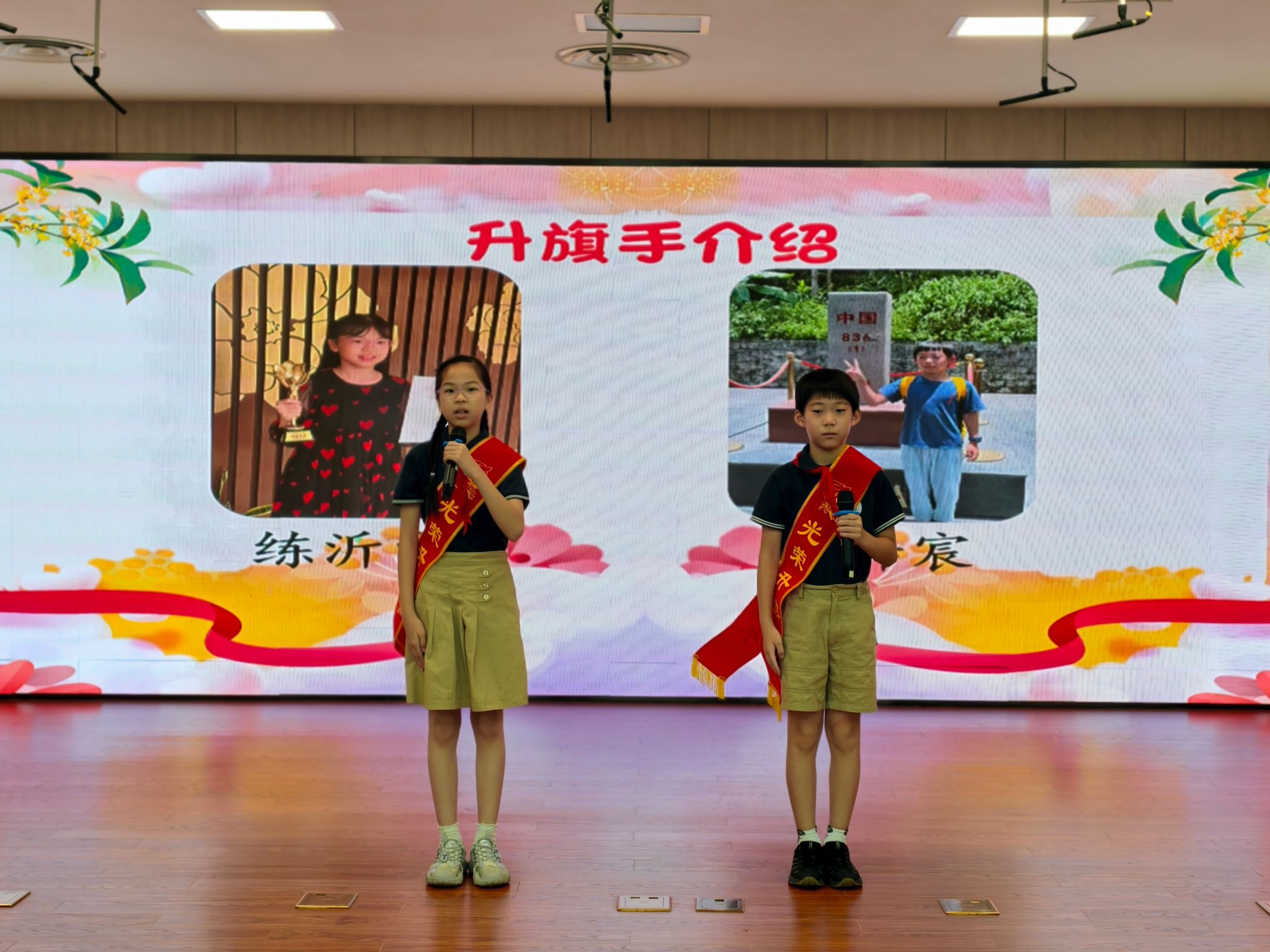 升旗仪式小主持:黄宗禹、庞芸曦