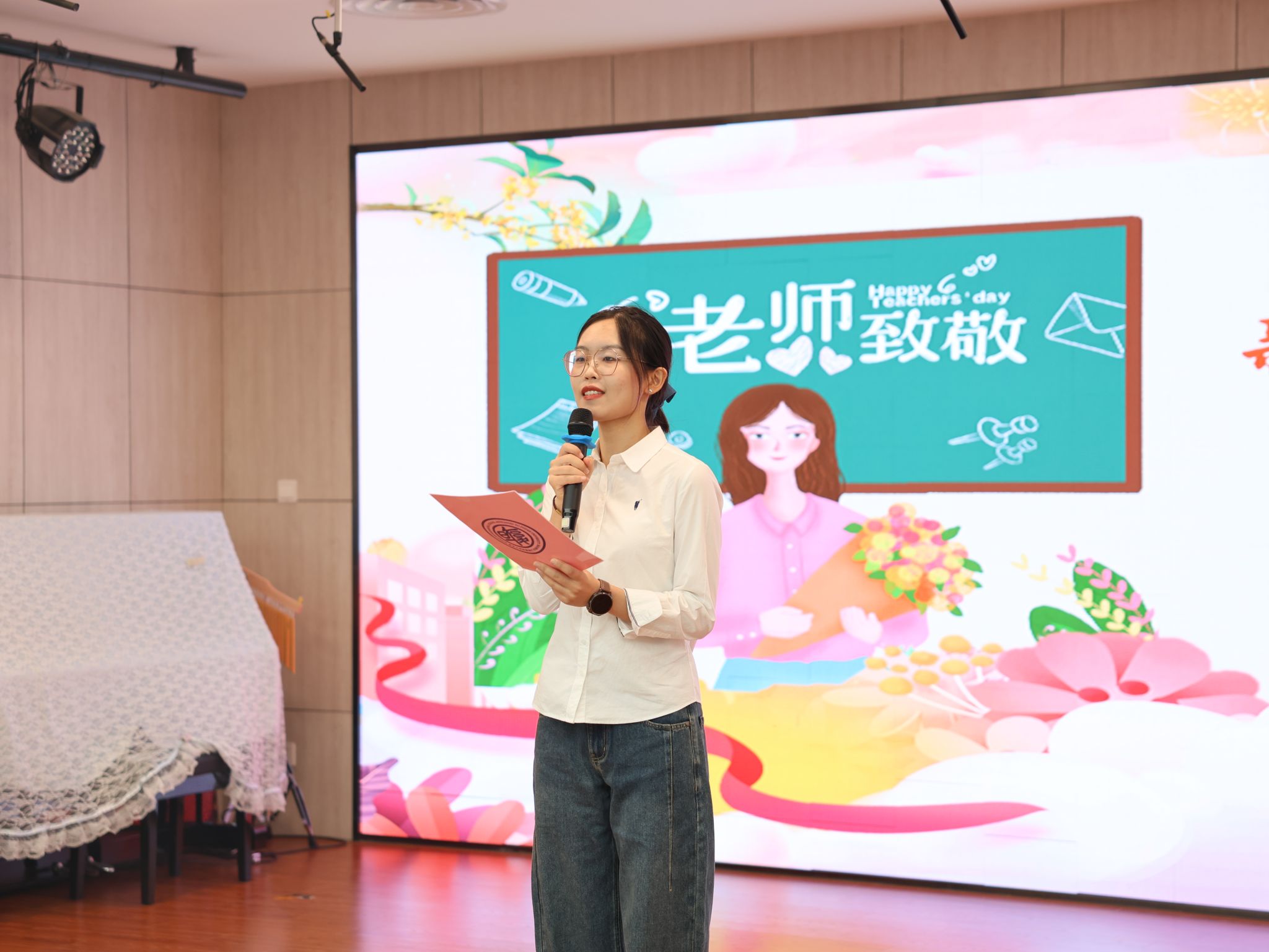 尾声处全体学生转向教师席鞠躬,掌声经久不息。