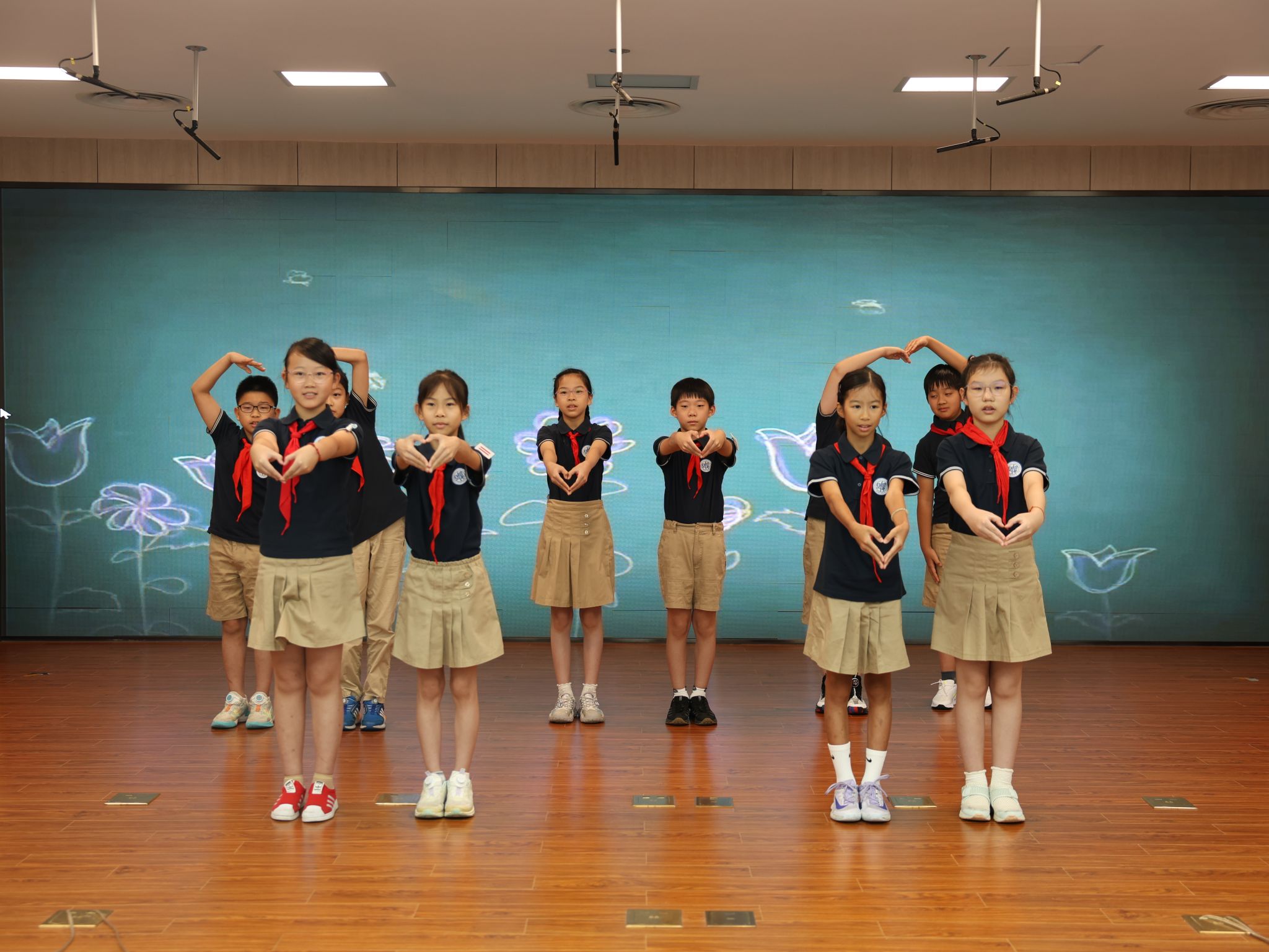 2025年9月10日晨,复旦大学附属徐汇实验学校全体师生沐浴晨光,以庄严的升旗仪式开启第2周征程。五(1)班主持人黄宗禹、庞芸曦清亮的声音响彻校园:"在这个天高云淡、硕果芬芳的时节,我们向老师献上最深敬意!"