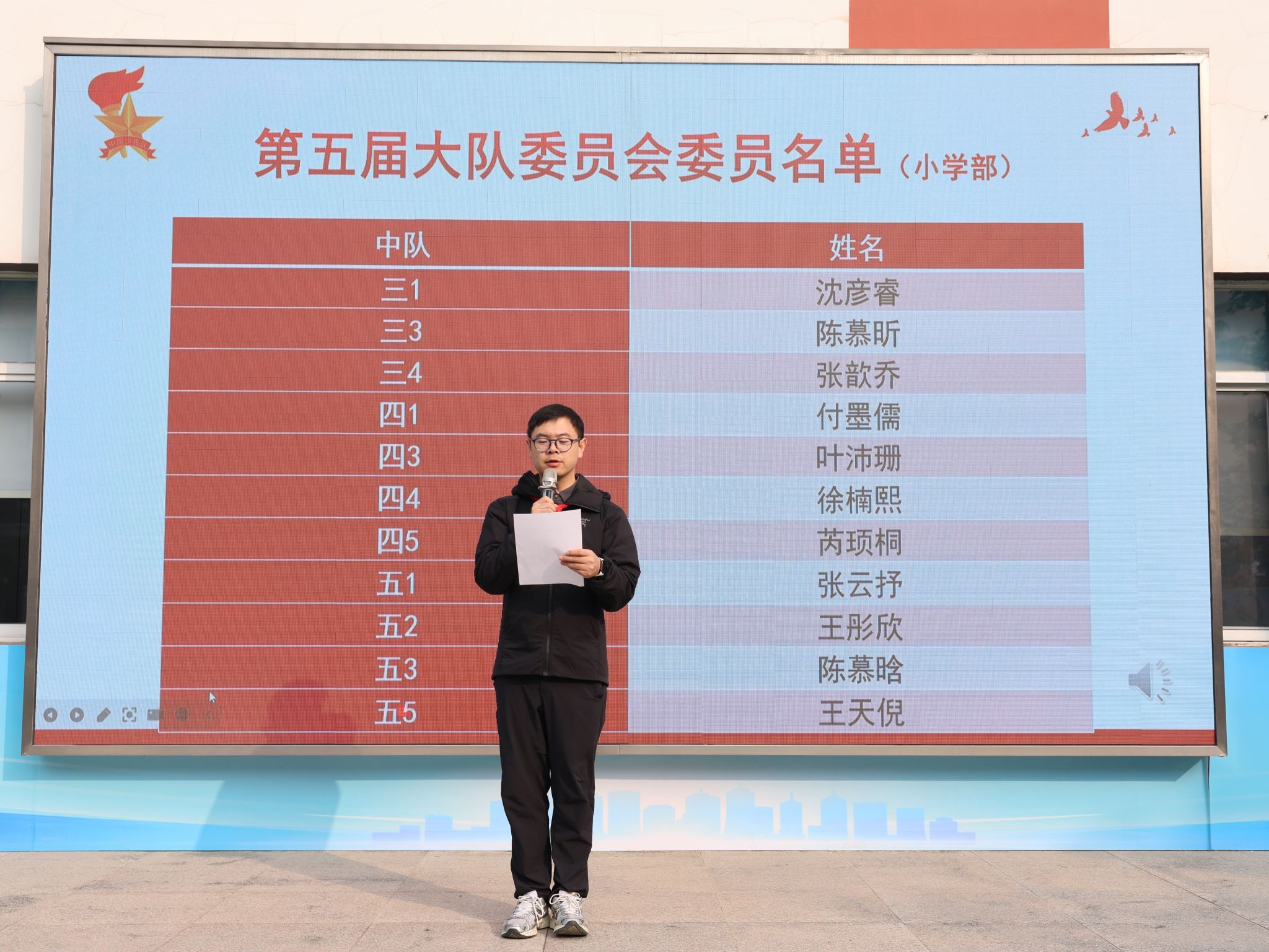 经过各中队民主推选、候选人竞选演说、全体代表无记名投票,最终产生新一届大队委员会委员。大队辅导员李老师庄严宣布名单,陆副校长等领导为新委员佩戴队标志。