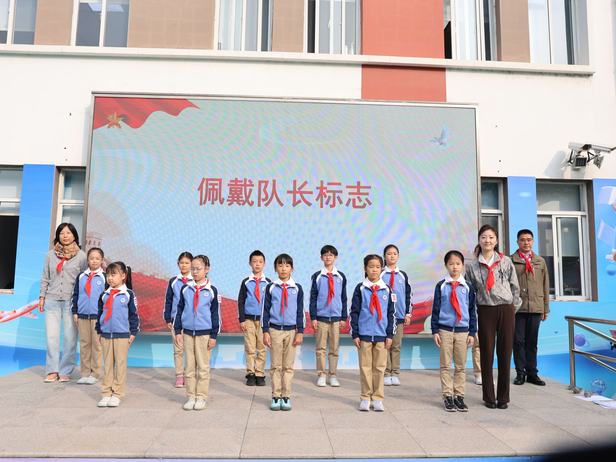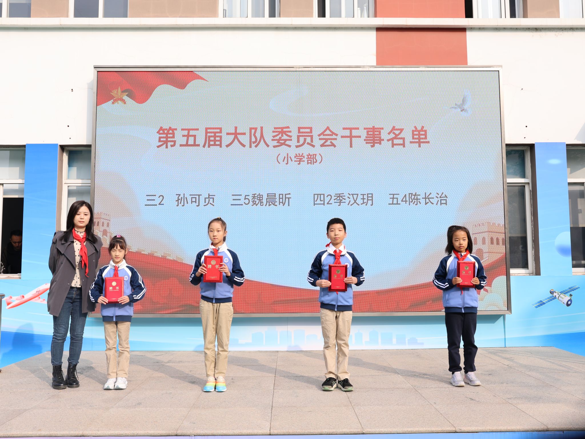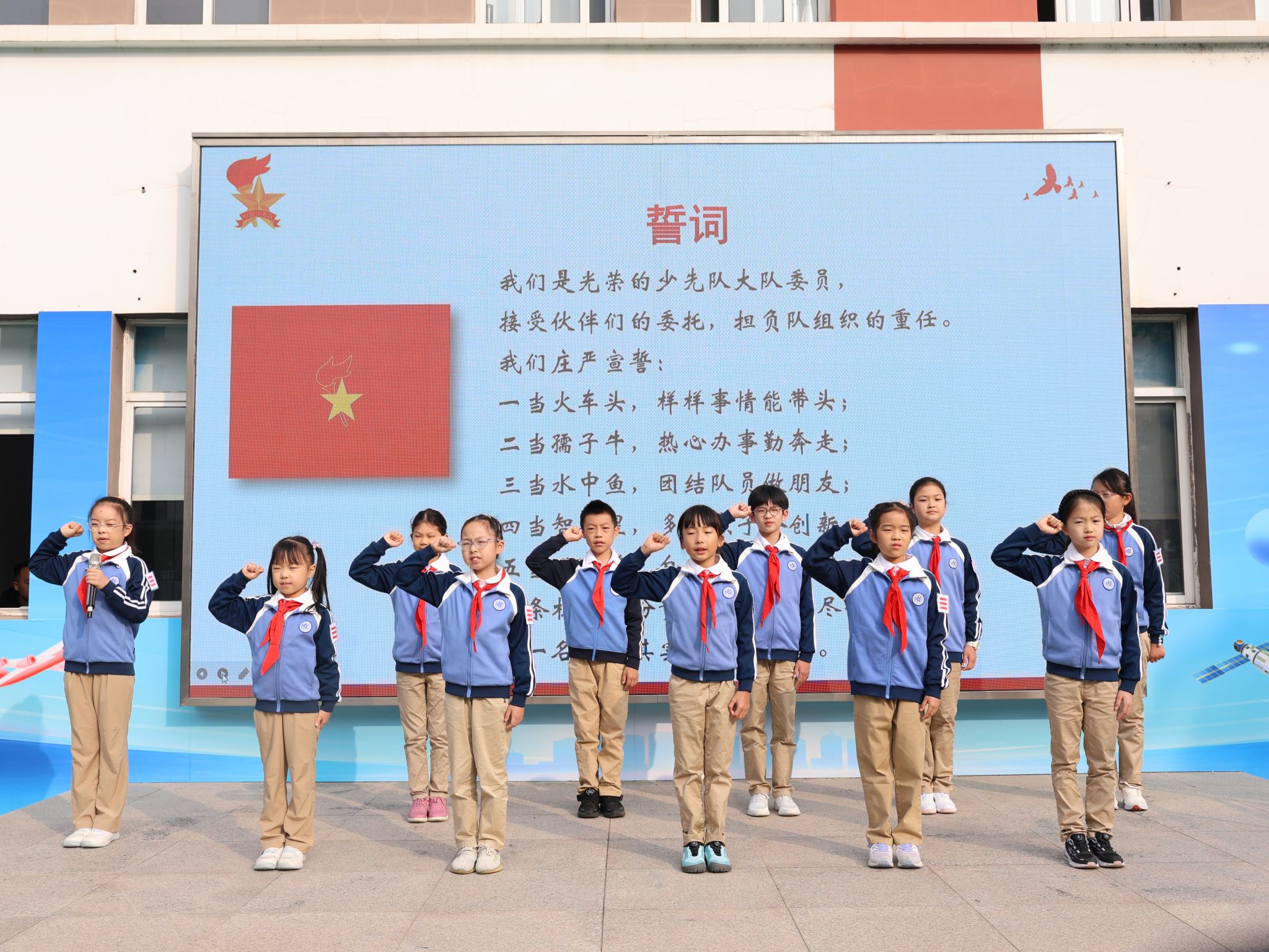 新一届大队委员在队旗下庄严宣誓:"一当火车头,样样事情能带头;二当孺子牛,热心办事勤奔走……"铮铮誓言回荡会场,彰显少先队干部的责任与担当。
