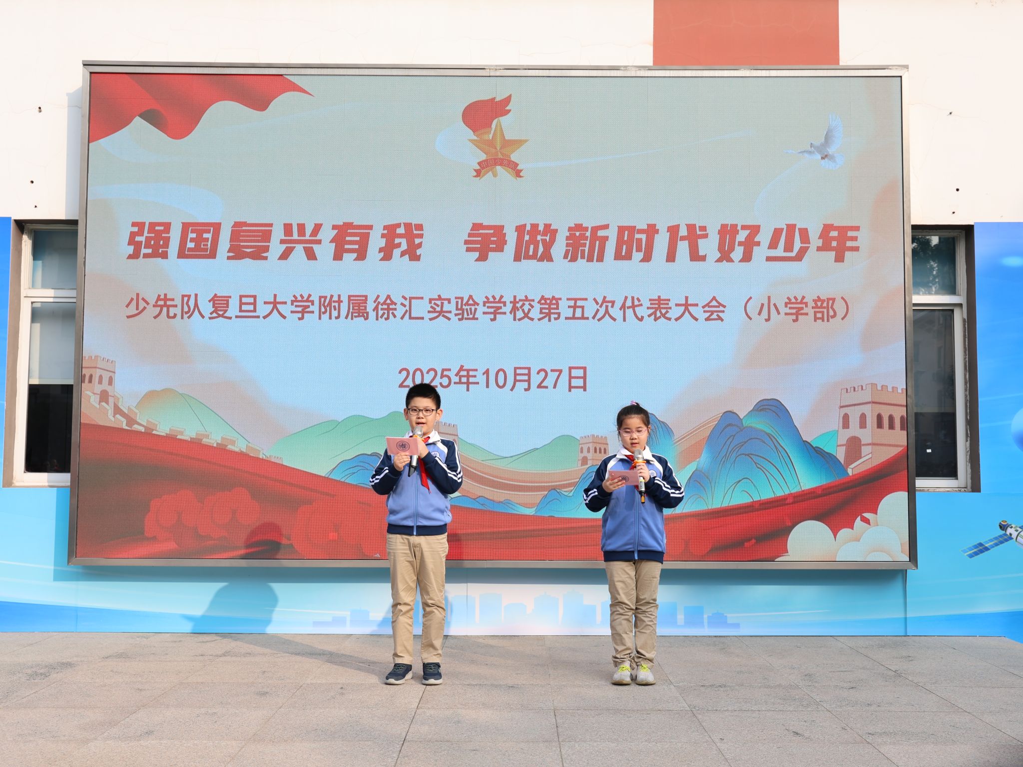 复旦大学附属徐汇实验学校651名少先队员代表齐聚一堂,隆重召开第五次少先队代表大会。在庄严的国歌声与激昂的队鼓声中,五星红旗与少先队队旗先后升起,红领巾与队旗交相辉映,展现出新时代少先队员的昂扬姿态。大队长陈慕晗以铿锵有力的报告拉开序幕:"本次少代会应到代表651人,实到651人,准备就绪!"