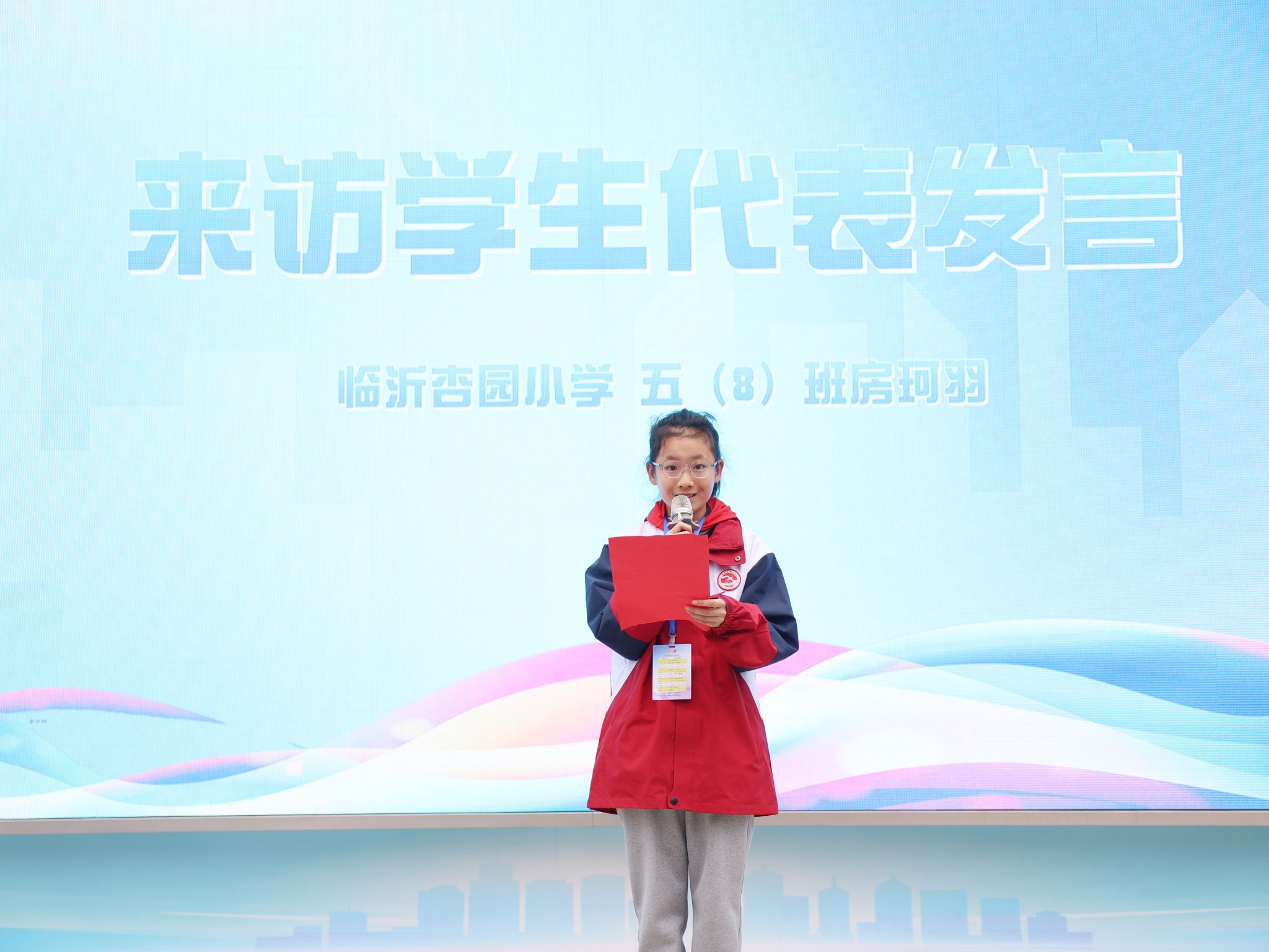 山东临沂杏园小学房柯羽同学分享研学感悟:"上海科技馆的VR体验让我看见未来,复旦校园的梧桐道让我读懂历史";徐汇学生代表顾书彤则回应:"山东孔庙的杏坛讲学、泰山石刻的文明印记,让我们触摸到中华文明的根脉。"