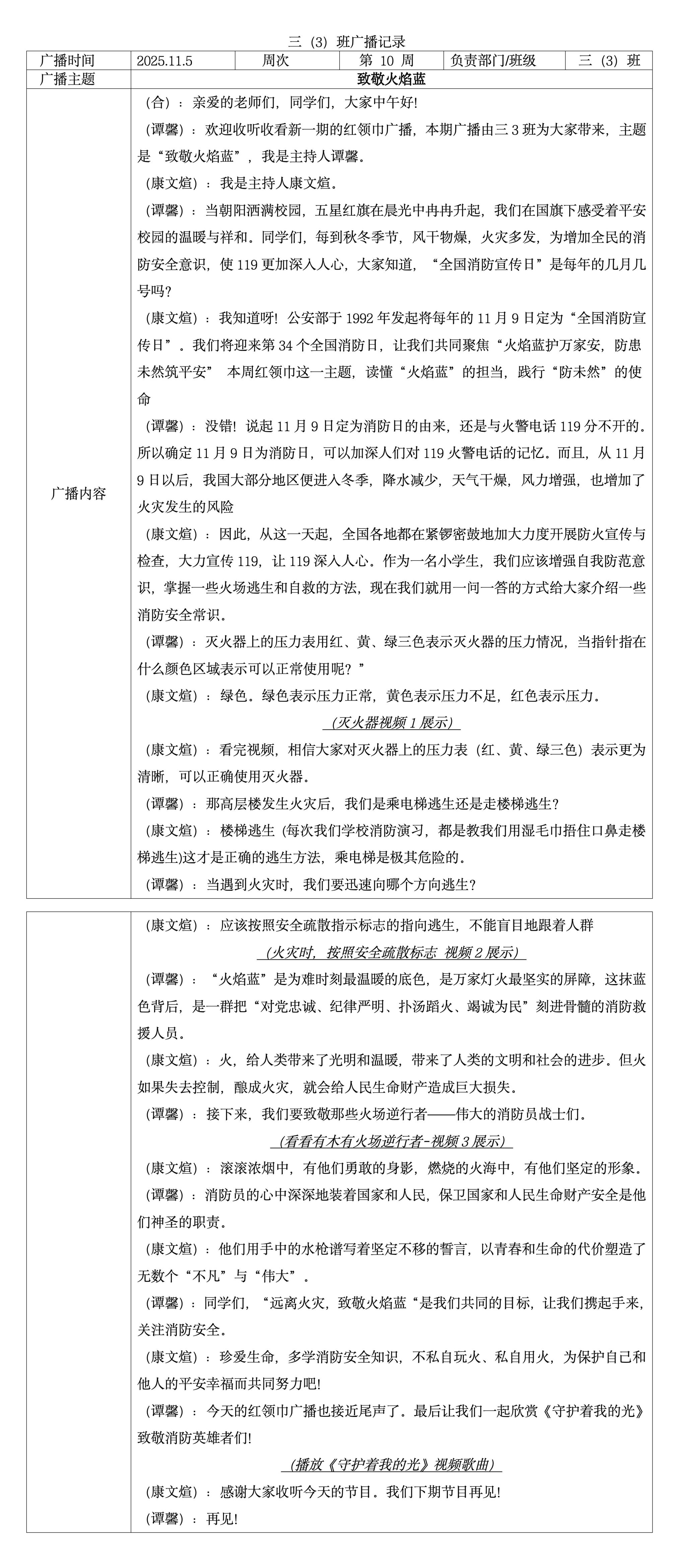 三(3)班红领巾广播:致敬火焰蓝