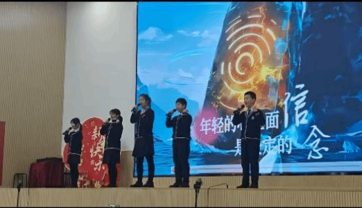 七年级学生的表演同样令人印象深刻。充满激情的《骄傲的少年》唱出了青少年的朝气与梦想;诗朗诵《拥抱新年,放飞梦想》则以铿锵有力的语言表达了学子们对未来的憧憬与决心。联欢会最后在全场师生共同合唱《相亲相爱》的温馨旋律中落下帷幕。歌声中,师生们手拉手,心连心,共同许下对新年的美好愿望。