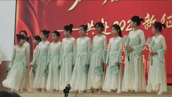 竹笛独奏《跑早船》旋律轻快灵动,演奏者指尖翻飞,婉转的笛声仿佛将民俗盛会的热闹场景搬至舞台。诗朗诵《拥抱新年,放飞梦想》气势恢宏,同学们以抑扬顿挫的语调抒发对未来的憧憬,传递出少年意气与担当。“以青春之名,赴时代之约”的铿锵誓言响彻礼堂。群舞《上春山》则以清新灵动的舞姿,在唯美背景映衬下,展现出中式审美的独特韵味。